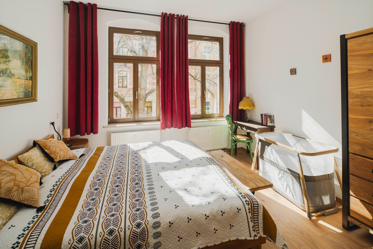 El tranquilo y luminoso departamento está ubicado en Goethestraße, una de las calles más hermosas del Paulusviertel. Se encuentra en el primer piso de un edificio Gründerzeit y tiene un dormitorio separado, así como una sala de estar con cocina abierta con un sofá cama muy cómodo. El apartamento puede alojar hasta cuatro personas, con el ancho del sofá cama (1,30 m) en la sala de estar. Dos niños pueden alojar cómodamente a dos adultos si se gustan mucho.