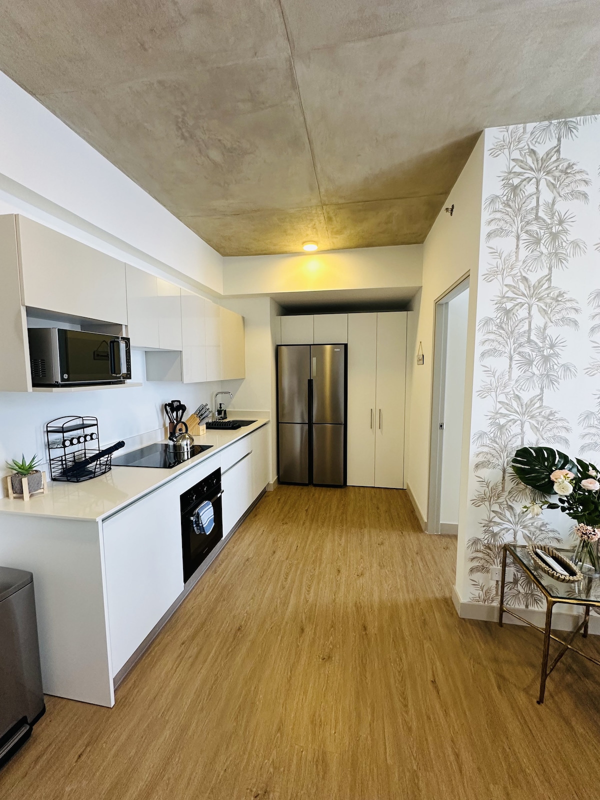 Apartamento totalmente equipado con todo lo necesario. Convenientemente ubicado en un barrio tranquilo de San Pedro, a solo 5 minutos a pie de la carretera principal, donde puedes encontrar supermercados, centros comerciales, cines, restaurantes, bares... A 15 minutos en autobús del centro de San José. También es perfecto para estancias más largas. Incluye: - Wifi rápido (con opción LAN). - Televisor de 50 pulgadas. - Cocina totalmente equipada. - Espacio de trabajo.
