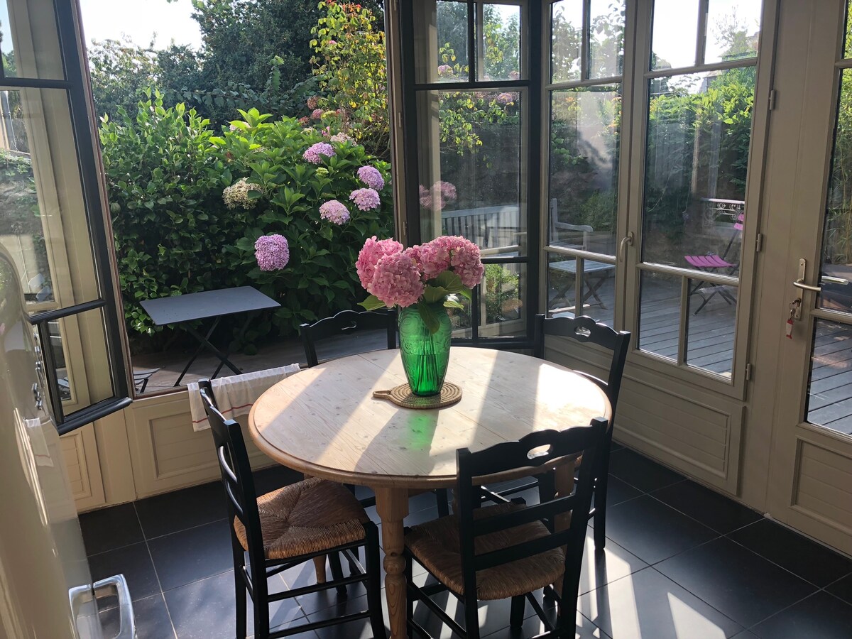 Hermosa villa, gran jardín cerrado, vistas, playa a 150 m