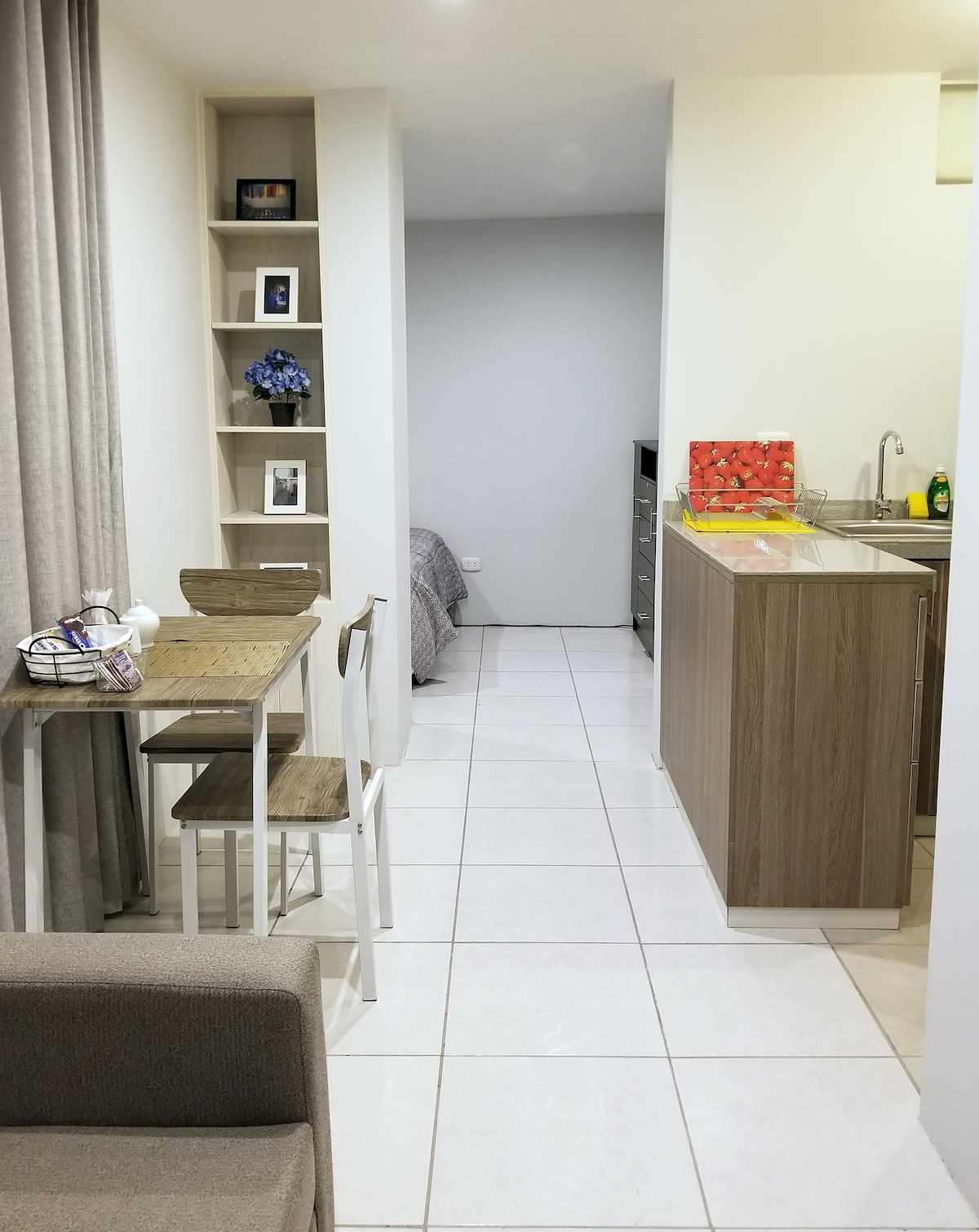 Disfruta de este alojamiento de estreno en Cayma, a 10 minutos del centro de Arequipa. Ubicado en un condominio seguro, ofrece gimnasio y sala de aeróbicos. La habitación cuenta con una cama queen, closet e implementos de calidad para un descanso ideal. El baño es completo y está perfectamente equipado. La sala y kitchenette, con tonos cálidos y un estilo moderno, brindan armonía y confort. Además, su balcón privado permite disfrutar de lindas vistas y del aire fresco de Arequipa