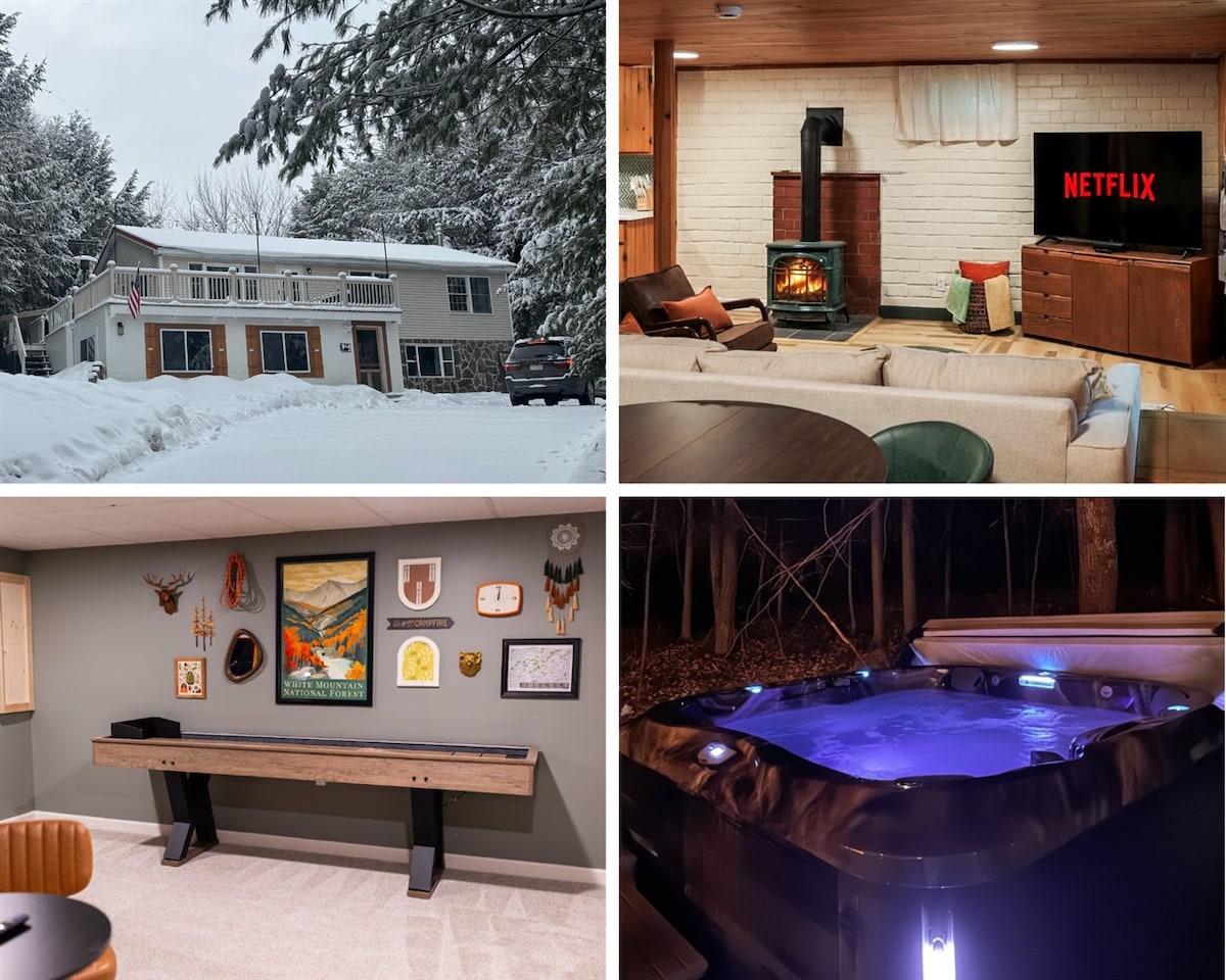 Te damos la bienvenida al alojamiento más lujoso del valle. Diseñamos, construimos y equipamos este alojamiento para una experiencia de alquiler más cómoda posible. Desde Boll & Branch Sheets hasta una máquina de expreso DeLonghi, no hemos cortado esquinas y hemos pensado en todo. Nuestro objetivo cuando construimos y diseñamos esta casa era crear un lugar acogedor y exclusivo para escapar en North Conway. ¡Con el lago Echo a solo 5 minutos a pie y varias montañas de esquí a solo unos minutos, nuestra villa es el punto de salto perfecto para cualquier temporada!