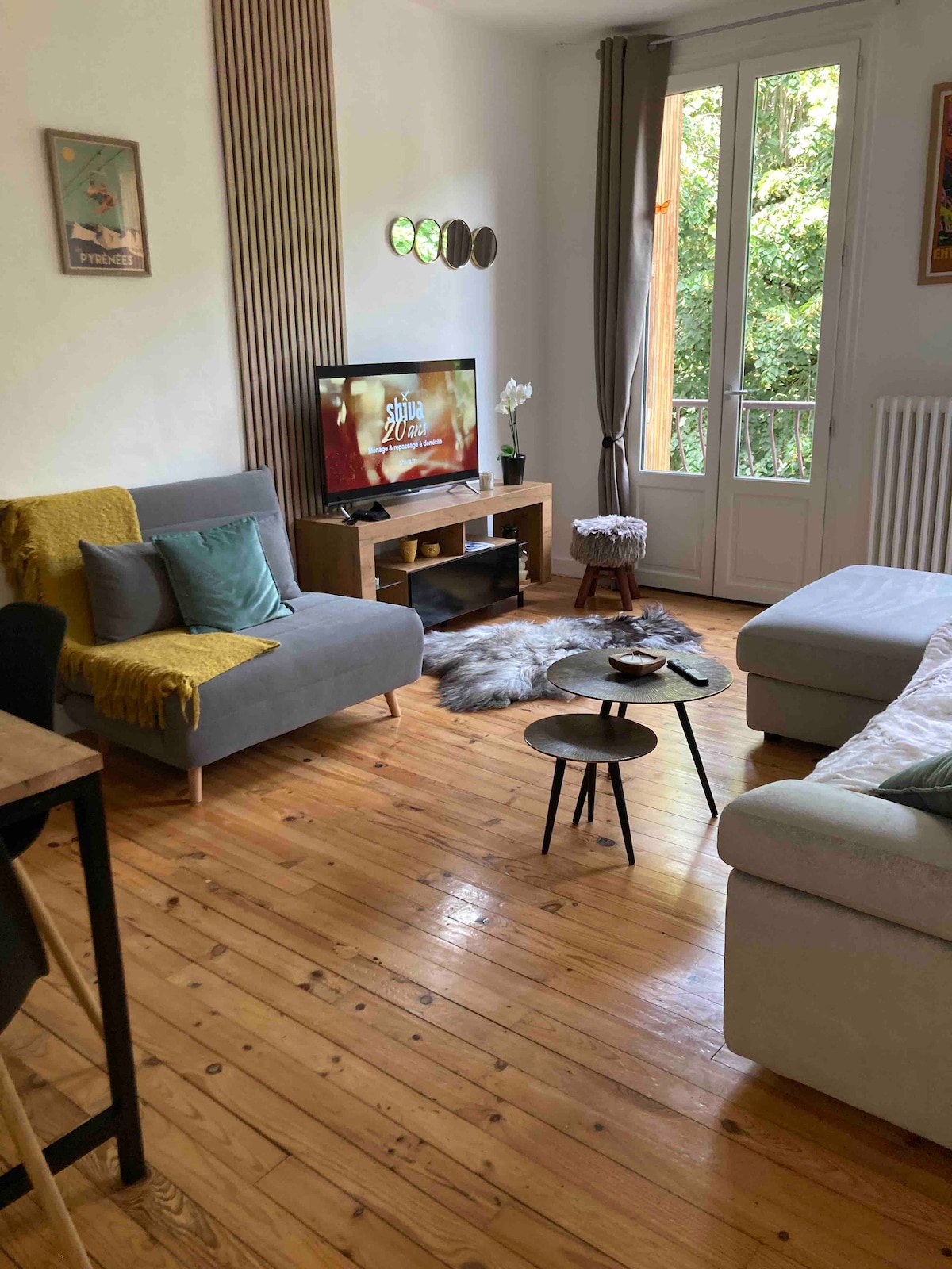 Hermoso apartamento antiguo, zona tranquila a 100 metros del centro de la ciudad y de los servicios. Vistas al sur frente a las montañas a través de un gran ventanal seguido de un balcón. El apartamento es muy funcional y está equipado como una residencia principal. El inodoro y el baño están separados, al igual que los dos dormitorios que conservan su intimidad. La ducha es muy espaciosa y funcional para duchar a los niños pequeños. Biblioteca de más de 200 obras. wifi de fibra. Posibilidad de limpieza