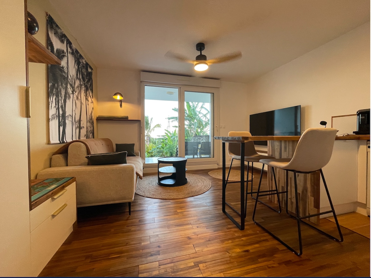 Situado en una urbanización dentro de una zona natural protegida, Sweet Moka le da la bienvenida con los siguientes objetivos: bienestar y relajación. Disfrutará de un apartamento de 32 m² con todas las comodidades con un dormitorio, un altillo, una sala de estar-cocina abierta, un exterior de 60 m² con jacuzzi de 5 plazas y terraza... Todo con vistas al mar y a la montaña, tranquilo. Lo más destacado: un gimnasio en casa con equipamiento profesional. La ubicación es ideal: a 10 minutos del aeropuerto, a 5 minutos de los servicios y a 20 minutos de Saint Denis.