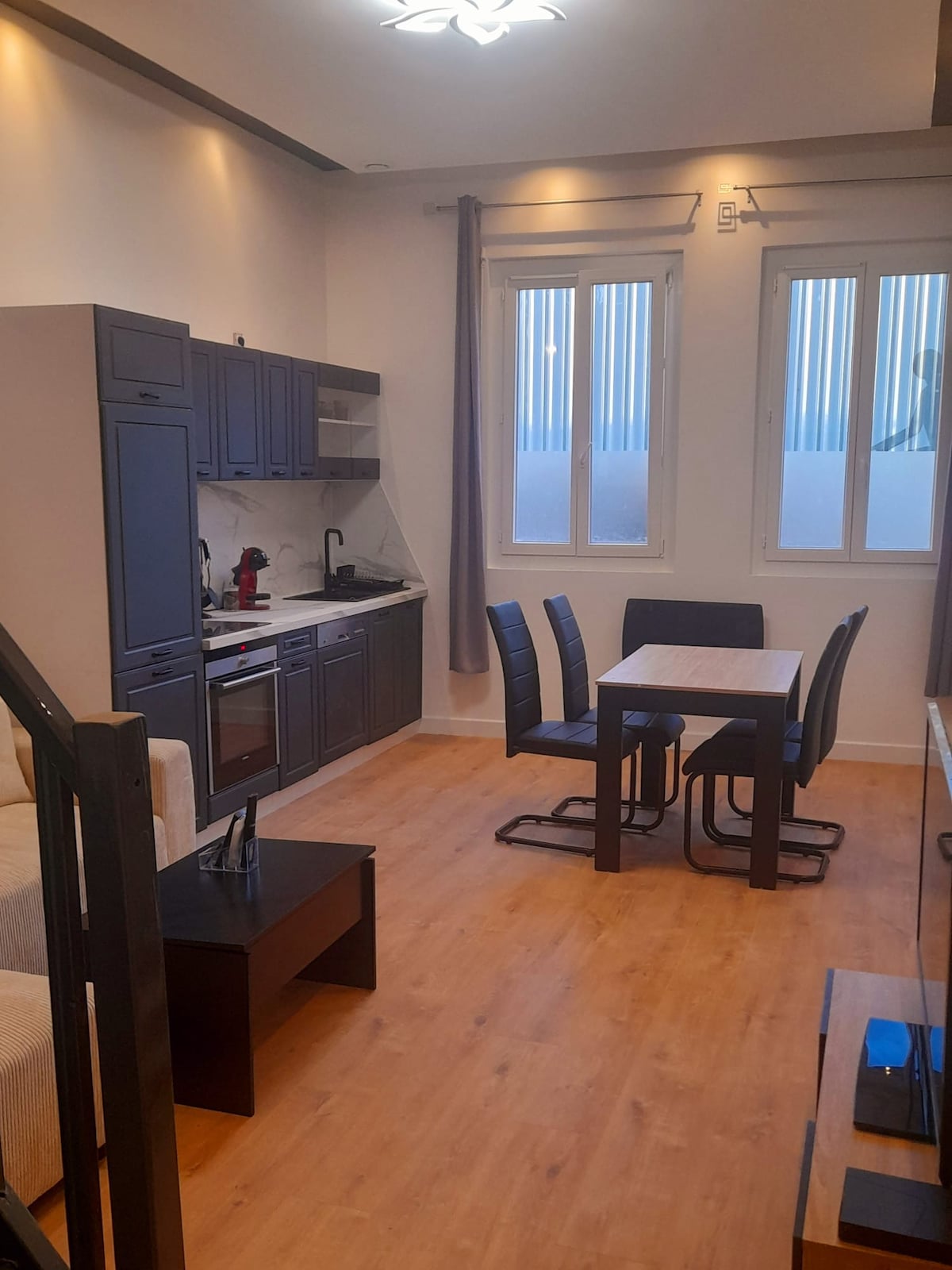 Charmant petit appartement climatisé entièrement rénové, à deux pas du centre ville de Voiron avec balcon et vue panoramique ! Il a été pensé pour que votre séjour soit le plus agréable possible et avec tout le confort nécessaire L’appartement se situe au deuxième étage sans ascenseur d’un petit immeuble surplombant le centre-ville, il est baigné de lumière tout au long de la journée