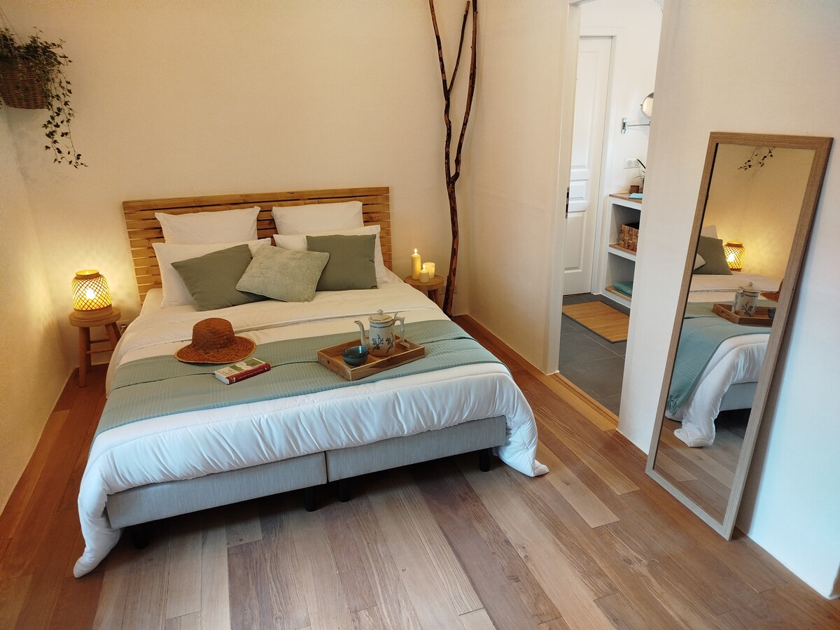 Bienvenido a nuestra habitación de huéspedes, enclavada en un entorno verde en el corazón de una aldea de Corrézien. Ubicada en las dependencias de una mansión del siglo XIX, ha sido restaurada con materiales naturales como la tierra, la madera y la cal, creando un ambiente relajante. Aquí todo invita a la desconexión: recoja frutas y verduras del jardín, recoja los huevos frescos y saboree nuestras infusiones y productos artesanales. Una estancia relajante en un entorno natural preservado.