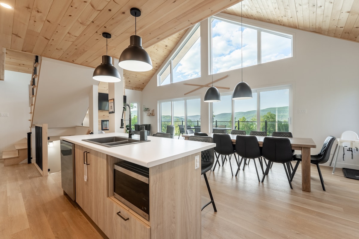 ¡Te damos la bienvenida a Miamba! ¡Ven y disfruta de un momento mágico en Domaine du Cerf, donde la increíble vista te dejará sin palabras! ➳ Junto a las pistas de esquí y bicicletas de montaña Estación de carga de➳ nivel 2 para tu vehículo eléctrico ¡➳ Terraza con vistas panorámicas a las montañas! ¡Spa de➳ 4 estaciones! ➳ Barbacoa y comedor al aire libre Fogata ➳ exterior y chimenea interior de leña ¡Fútbol de➳ mesa para animar tus noches! ➳ Aire acondicionado. ¡Luz natural➳ excepcional! ➳ Espacio de trabajo