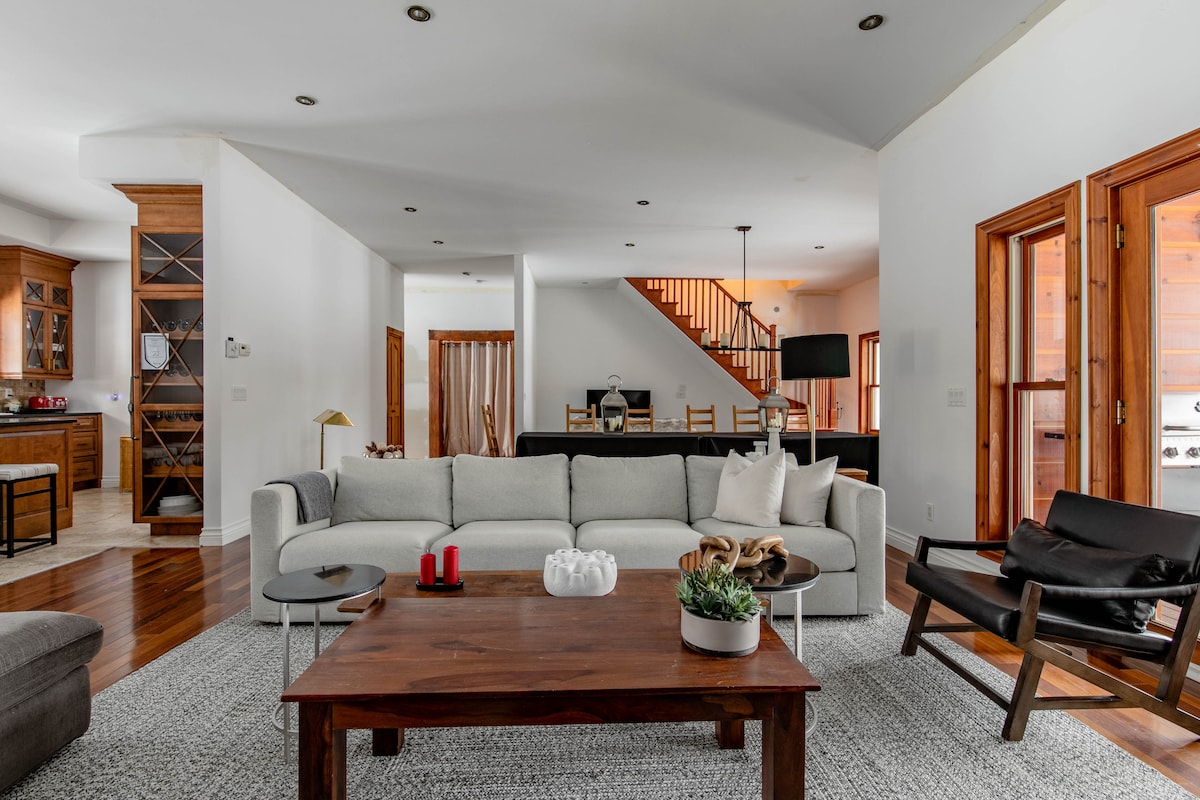 Escápese de la vida urbana en esta cálida casa de campo, perfecta para momentos de relajación. 🌲 A 4 minutos de los servicios y a 9 minutos de la estación de esquí VSC 🌐 Wi-Fi de alta velocidad (Bell Fibre): teletrabajo o streaming. 🔥 chimenea interior de madera y fuego exterior. 💦 Spa accesible durante todo el año y piscina climatizada en verano. 🎱 Mesa de billar, futbolín, televisores inteligentes. ☕ Todo incluido: ropa de cama, toallas, café, artículos de cocina y productos de higiene.