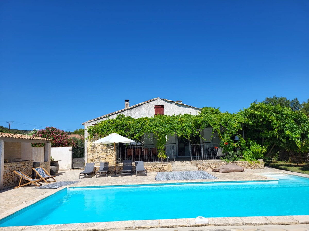 Encantadora casa de campo situada en una pequeña urbanización y con capacidad para 3 adultos y 1 niño. Gran salón con sofá cama y cocina equipada, todo abierto a la terraza verde para las comidas. Una habitación con cama queen size, baño con ducha. El jardín cerrado ofrece una magnífica vista del valle. Estacionamiento privado. Aire acondicionado. Piscina privada en temporada. wifi La cabaña y el jardín son sin vecinos y tranquilos. 30 km de las playas 41 km de Montpellier.