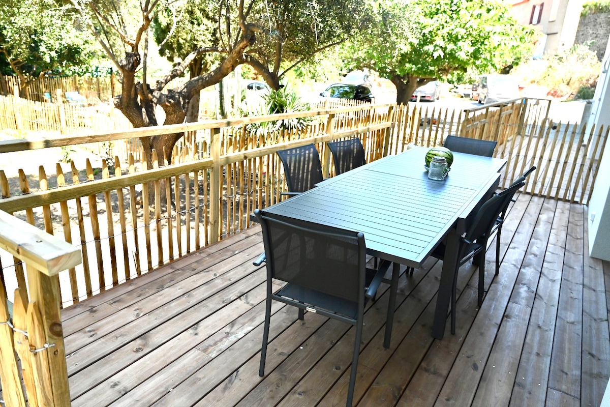 Magnífico alojamiento nuevo y confortable para hasta 3 personas en Argelès sur Mer. Se encuentra en el corazón de un tranquilo pinar, a 100 m de la playa y de los comercios, y cerca de todas las actividades turísticas. - Plaza de aparcamiento (pequeno garaje) - Aire acondicionado - Terraza - Cocina equipada - TV - Wifi - Sin escalera - Lencería y consumibles (café, té, gel de ducha, detergente en polvo, pastillas de lavavajillas) incluidos. Relájese en este alojamiento tranquilo y moderno.