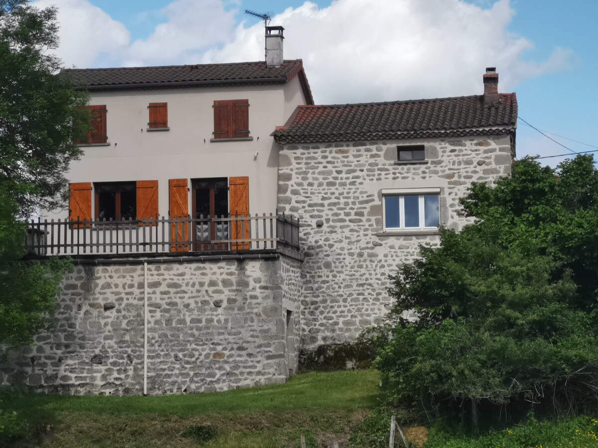 Situado en Cœur du PARC du LIVRADOIS FOREZ en AUVERNIA en una pequeña aldea de 3 casas, casa de campo aislada, tranquila , sin salida , rodeada de bosques y prados con 1 caballo y 3 burros . Cientos de kilómetros de rutas de senderismo , lagos , estanques ,castillos , volcanes ... Capacidad de 5 a 7 PERSONAS más 1 cuna Escalera de caracol, 2 dormitorios, s.e., wc arriba. Ropa de cama y sábanas incluidas. Terraza, parrilla, muebles de jardín