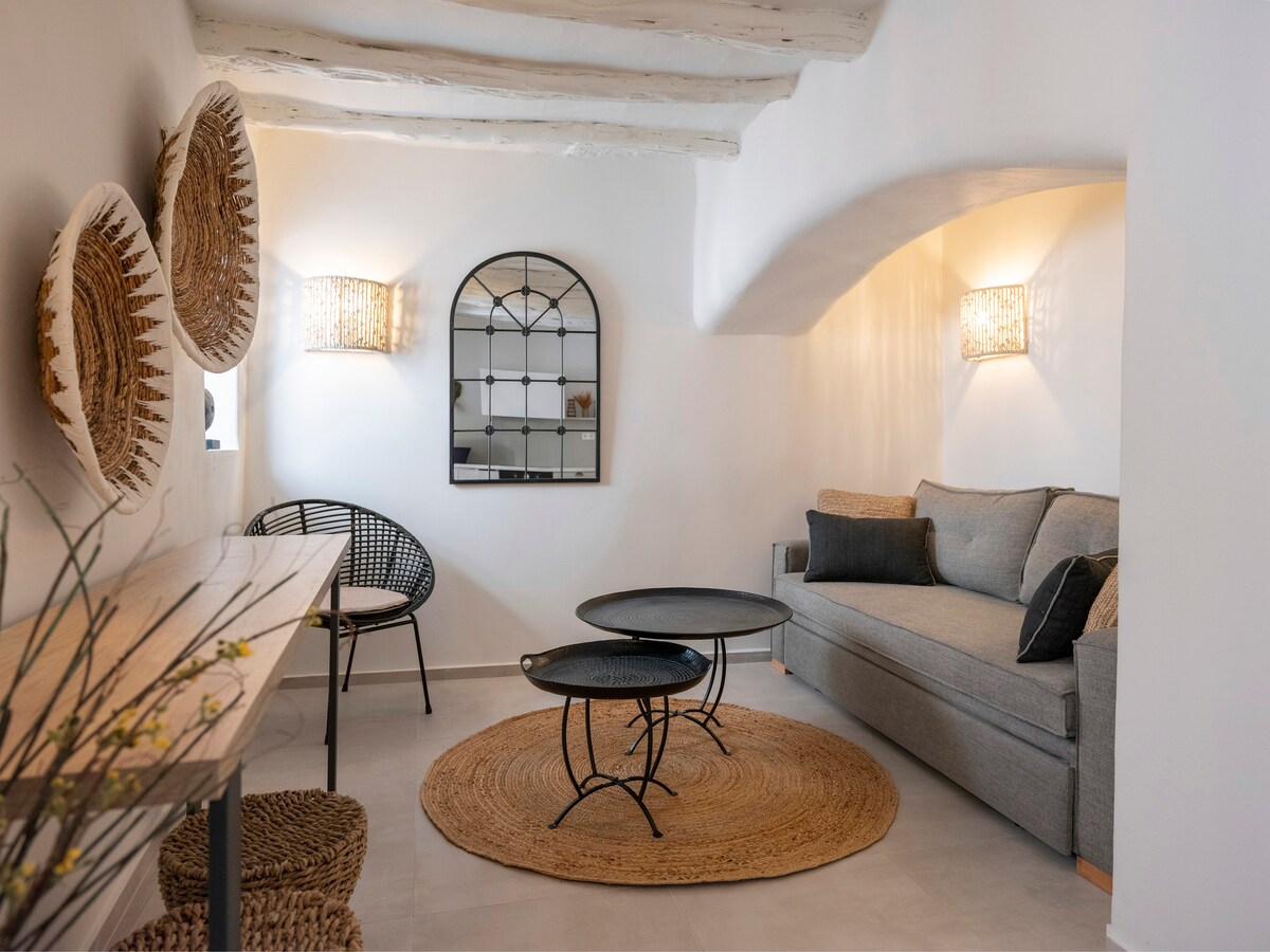 Apartamento en planta baja de estilo tradicional cicládico, en el corazón del asentamiento de Parikia. Con una ubicación ideal, ofrece tranquilidad y relajación, y una ubicación central conveniente. A poca distancia a pie: toda la vista interesante (mercado antiguo, castillo franco), panadería, tiendas. El mar está a pocos metros de la casa y en 2 minutos se puede llegar a la calle junto al mar, donde puedes disfrutar de la vista al atardecer. El puerto, la estación de autobuses y la parada de taxis están a 3 minutos a pie.