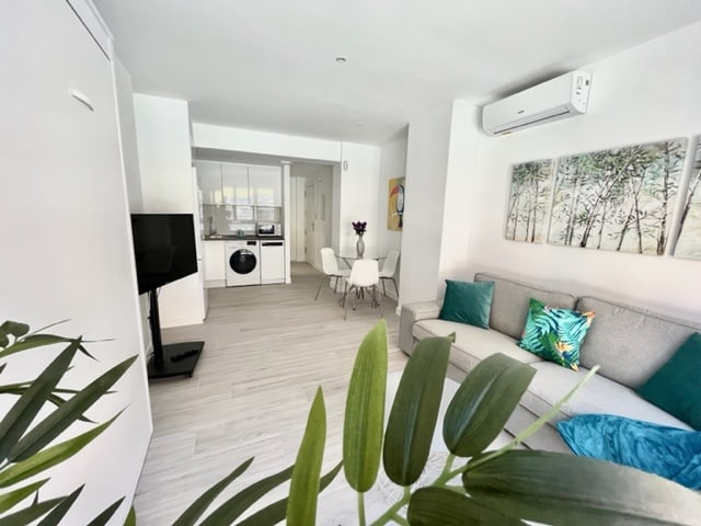 Apartamento a pie de calle.ideal para viajes de trabajo, de estudios,asuntos médicos etc. con vitrocerámica, nevera, lavadora/secadora,lavaplatos, bomba de aire calor/frió, microondas, nespresso, utensilios de cocina completo,hervidor de agua para infusiones,cama matrimonio, sofá cama 190x150, smart tv, wifi, alarma, línea directa metro a Sol ( 15”),amplio baño, ducha efecto lluvia,dispensadores automáticos de gel.zona ajardinada,muy fácil aparcamiento, con dos parques infantiles de columpios