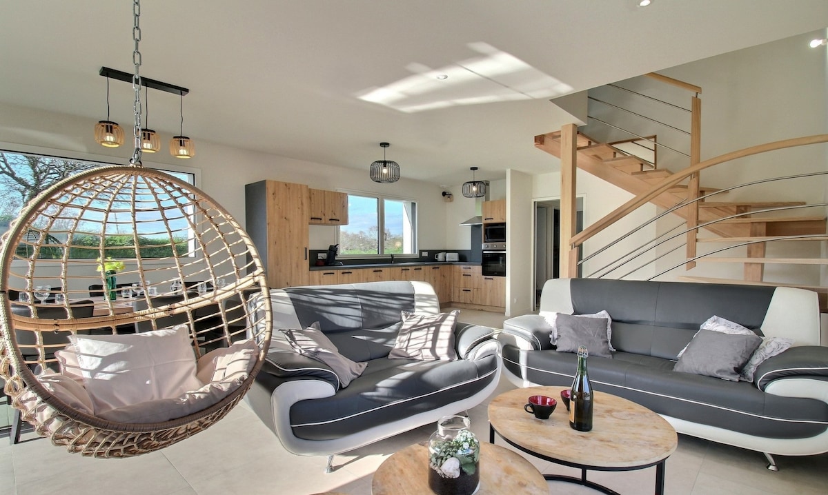 Con vistas a la bahía de Morlaix, la Maison Auzenn de 4 estrellas tiene capacidad para 12 viajeros y se encuentra entre el mar, la ruta de senderismo GR34 y un parque arbolado 🌿. Más que una simple casa, es un sueño inusual que se ha convertido en un verdadero paraíso familiar: Despierte con vistas al mar desde las terrazas, y los muebles antiguos y la artesanía bretona crean un ambiente único. Se admiten mascotas, ropa de cama y servicios incluidos 🤍