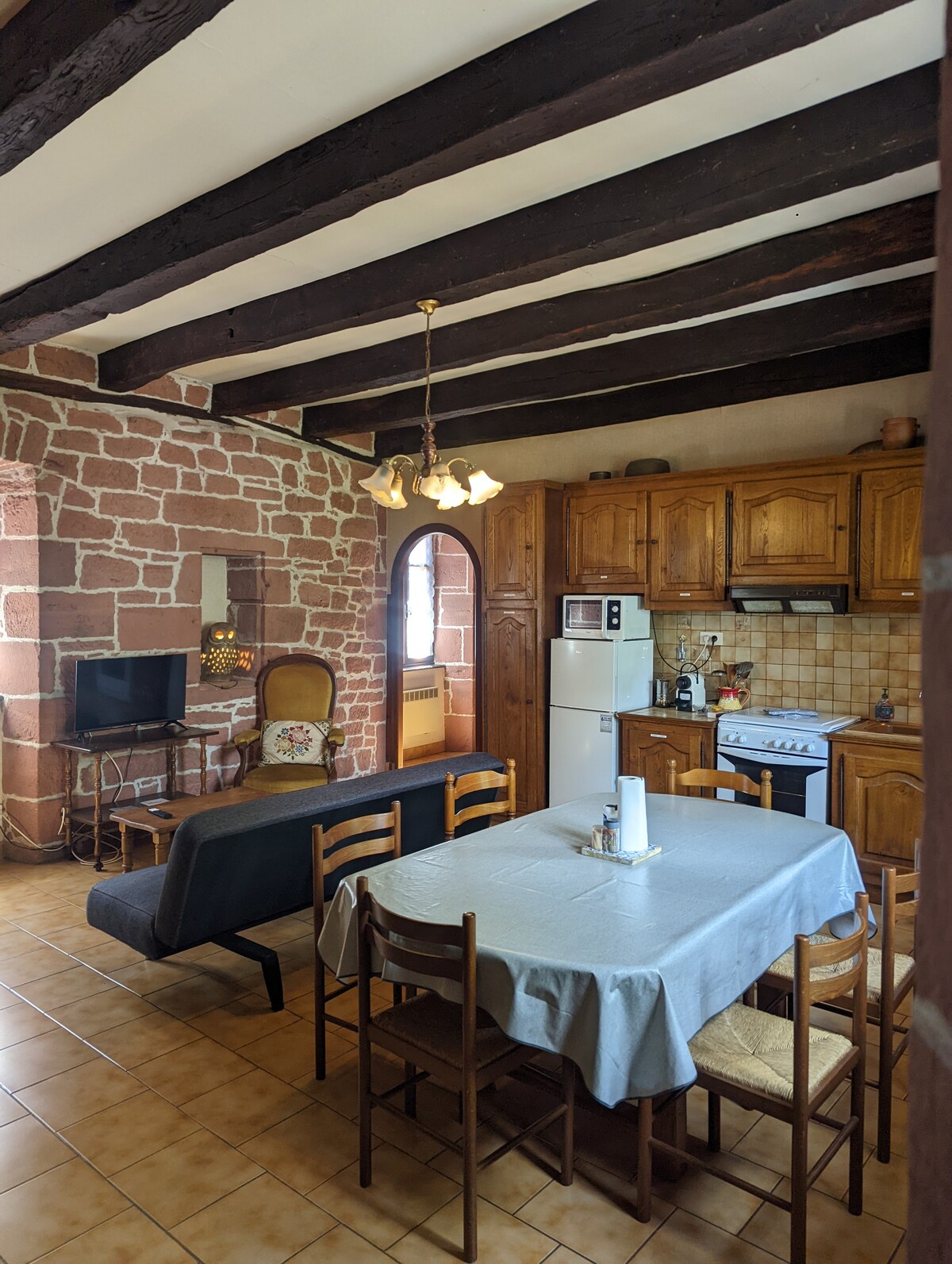 En el pasado, esta casa era la escuela de las niñas del pueblo. A pocos kilómetros , Collonges-la-Rouge, Turenne, Curemonte, y en un radio de 40 km, Beaulieu/ sur Dordoña, Martel, Rocamadour …todos clasificados como « los pueblos más bonitos de Francia ». * En la planta baja, tiene una habitación, baño/WC y una zona de comedor. En este remanso de paz, con aire acondicionado natural, podrá disfrutar plenamente de sus vacaciones. Nota: Se proporcionan sábanas y toallas para su estancia 👍