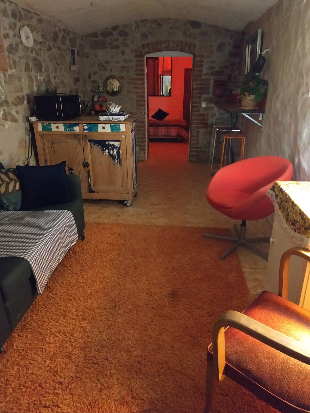 Mi pequeño estudio acogedor está en el corazón de un pueblo en el parque del Pilat. Es ideal para alojar a dos personas para una noche o un fin de semana. En verano es naturalmente muy fresco (¡no más de 23!) porque está construido en piedra y alberga. Hay una pequeña cocina equipada y baño, ducha italiana. Perfecto para deportistas, amantes de la naturaleza, apasionados de la bicicleta o viajeros en ruta. Encantador, con una decoración cuidada en materiales naturales; madera, piedra, metal...