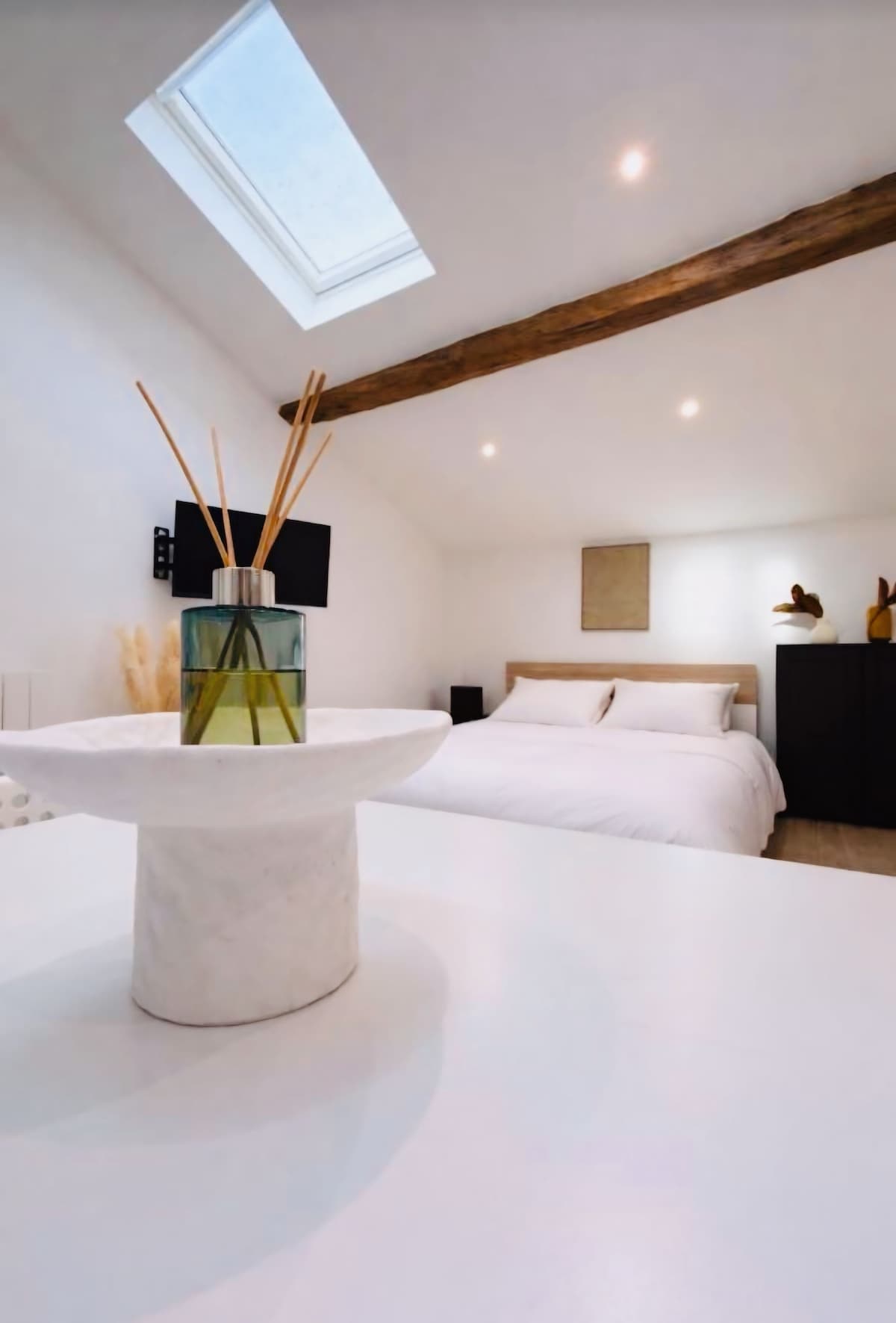 Para una estancia relajante en el corazón de los viñedos, ofrecemos un apartamento independiente con carácter de 80 m² situado en el corazón del Château Lambert, residencia histórica del pueblo de Chénas, en la denominación Moulin-à-Vent. El apartamento da al patio de la bodega y a los viñedos de Moulin-à-Vent al fondo. Reformado en 2021, este apartamento que acogió en el siglo XIX la escuela privada del pueblo goza de una ubicación perfecta para descubrir el Beaujolais y sus vinos.