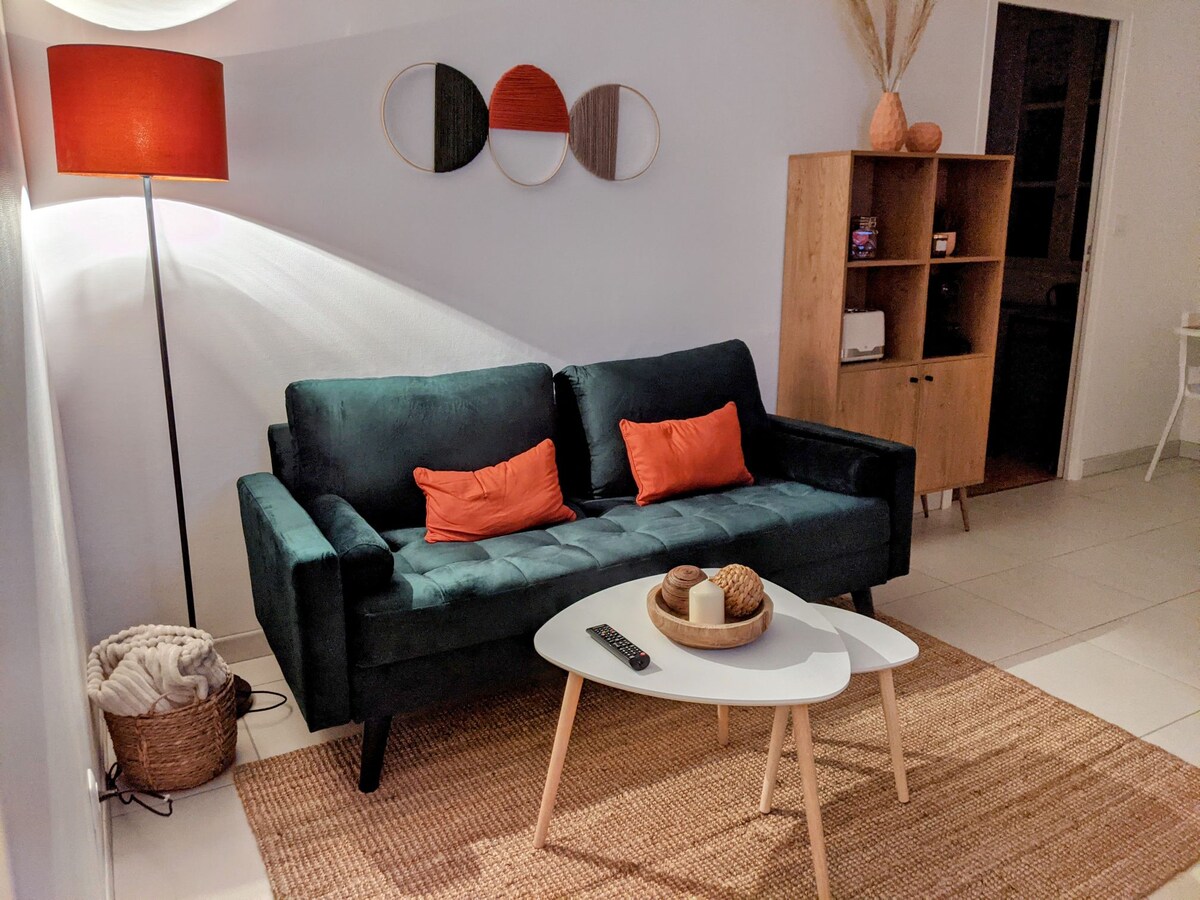 Alojamiento tipo T2 en el corazón de Paray-le-Monial, renovado y con aire acondicionado, tranquilo. Se encuentra a 5 minutos a pie de la basílica y a 3 minutos a pie de un supermercado. Encontrarás todo lo que necesitas para sentirte bien: - Cocina equipada. - Habitación con cama Kingsize con todas las comodidades🛏️, armario - Baño totalmente renovado con inodoro - Salón con sofá cama que se despliega en el suelo - Gran comedor luminoso - Terraza de 6 m2 con vistas despejadas y vistas al campanario de la Basílica