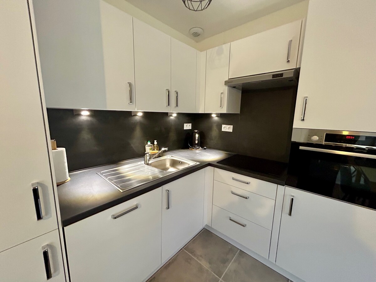 Nuestro alojamiento recién renovado de 33 m² tiene aire acondicionado y está a pocos pasos del encantador y histórico centro de Dijon. En un pequeño edificio separado detrás de nuestra casa, tendrás tu propia sala de estar/cocina, dormitorio separado y baño. Hay aparcamiento público gratuito en la calle frente a la casa. Estarás justo al lado del Palais des Congrès y el Auditorio, y a poca distancia en tranvía de la estación de tren, la universidad y el hospital. Cerca de supermercados y otras tiendas. También hablamos francés.