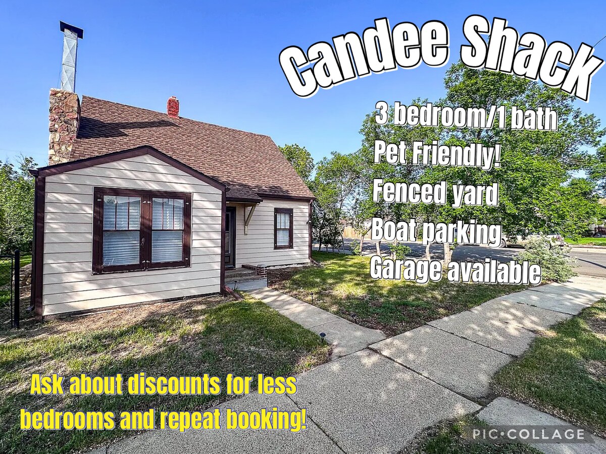 Alojamiento asequible, excelente ubicación. ¡Te damos la bienvenida a la “Candee Shack” de Glasgow, donde se admiten mascotas! Cerca del centro y a 20 minutos de Fort Peck, esta es nuestra casa de vacaciones que compartimos cuando no estamos en la ciudad. Este alojamiento es más antiguo y los pisos son chirriantes, pero es cómodo, acogedor y tiene lo básico. NOTA: Este anuncio es para toda la casa, pero si necesitas menos habitaciones, alquila solo la planta baja o solo dos dormitorios por un costo reducido. Envía un mensaje para hablar. El garaje con calefacción se puede agregar por $25/nt.