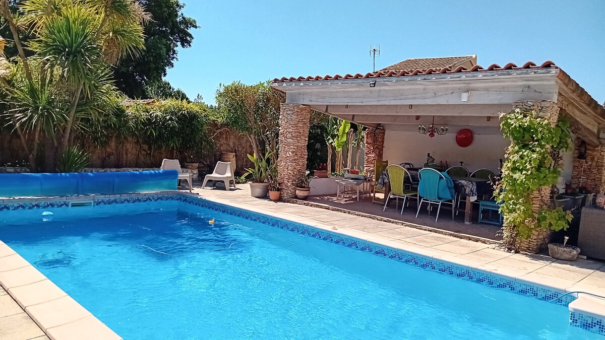Alojamiento nuevo totalmente equipado, terraza cubierta que se extiende hacia un exterior con sombra (muebles de jardín, hamaca, juegos para niños), cancha de petanca con su propia piscina (apertura a mediados de abril). Idealmente situado para actividades como senderismo, trail running, ciclismo de montaña, piragüismo, etc. A 3 minutos (1,3 km) del centro del pueblo, a 4 minutos de Sauze (punto de llegada del descenso de las gargantas del Ardèche), cerca de la cueva de Chauvet, del Pont d'Arc, del Pont du Gard, etc. A 45 minutos de Aviñón (festival), de Nimes (Arena) y a 1 hora y 30 minutos del mar.