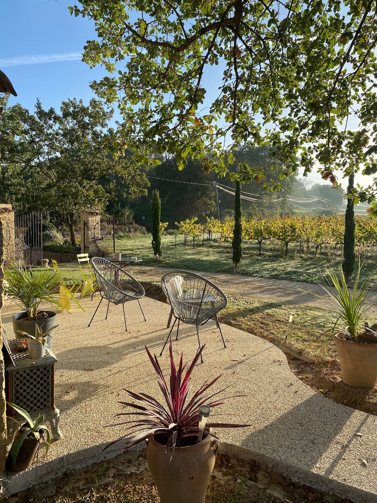 ¿Quieres una escapada romántica? ¿un lugar insólito? Bienvenido a nuestra Masía del siglo XVIII totalmente renovada para ofrecerle una estancia cerca de la naturaleza. Nuestro apartamento creado en la frescura de bóvedas de piedra le hará vivir una estadía original. Desde su terraza sombreada disfrutará de la vista de las plantaciones de olivos y robles de trufa. Y también será recibido por Lulu & Griotte nuestros dos perros que acompañan a Nadine en su cosecha de trufas.