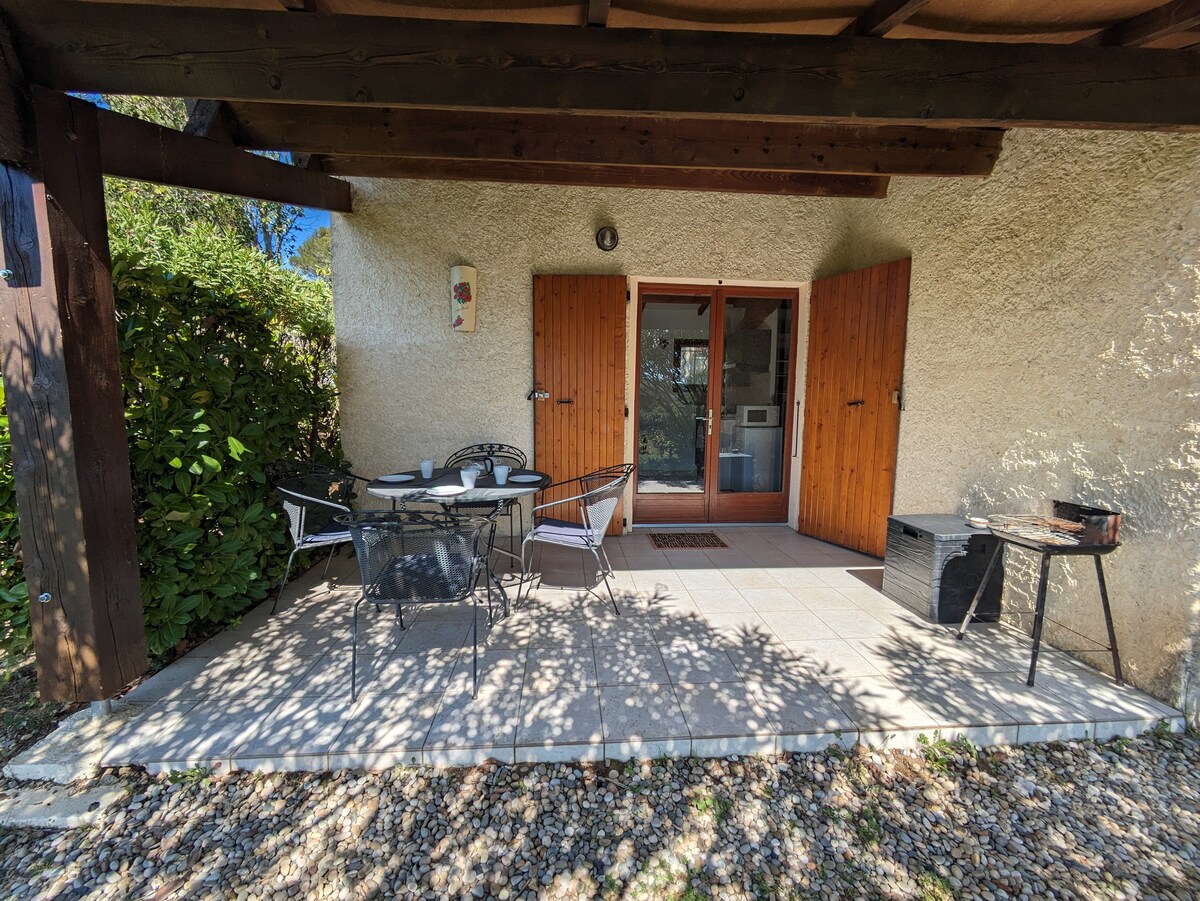 Bonita casita de 35 m2 a los pies de las gargantas del Ardèche. En una residencia de vacaciones con conserje, gran piscina común a todos los alojamientos, piscina infantil para los niños. Plaza de aparcamiento privada. Comodidad asegurada para 5 personas máx. La casa tiene todas las comodidades, lavadora, lavavajillas, horno , microondas, placa , nevera, congelador, TV, wifi El jardín (50 m2) cerrado está situado en una zona tranquila, muebles de jardín, tumbonas y barbacoa.