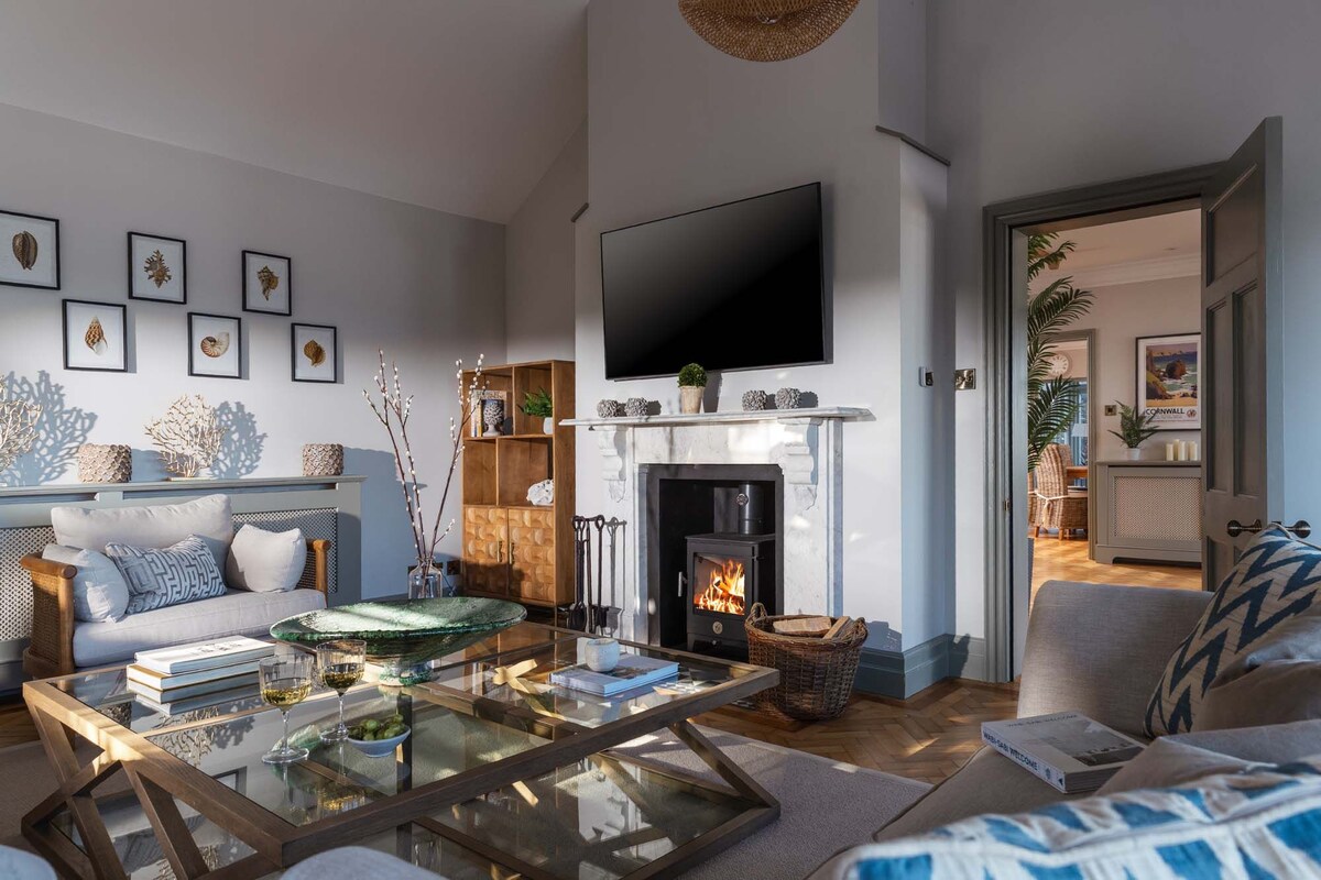 Disfruta de una estancia de lujo con unas vistas impresionantes en esta joya oculta de una casa en la encantadora e histórica ciudad de Penryn, justo al lado de Falmouth. Disfruta de una impresionante vista panorámica desde la comodidad de tu cama y relájate en un lujoso baño equipado con una ducha de cascada. La propiedad cuenta con una cocina contemporánea espaciosa, totalmente amueblada y equipada, una elegante sala de estar, un cargador de vehículos eléctricos y una terraza para una experiencia tranquila y relajante. Ideal para parejas, familias y profesionales por igual.