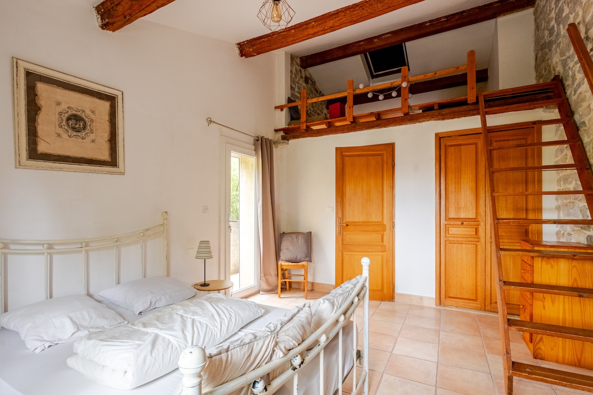 Loft muy luminoso con sauna, red suspendida totalmente segura, 100 m2 de jardín privado, calefacción por suelo radiante, aire acondicionado, 2 camas tamaño queen de 160 cm, ducha italiana, parrilla al aire libre con sarmientos de vid para sublimar sus parrillas. ¡Ideal para disfrutar de la naturaleza y la hermosa región del Pic-St-Loup! Cerca: Viñedos, Pic-Saint-Loup (Senderismo a 5 min), Les Matelles (medieval-5 min), Montpellier (20 min) playa (30 min) Cévennes (30 min)