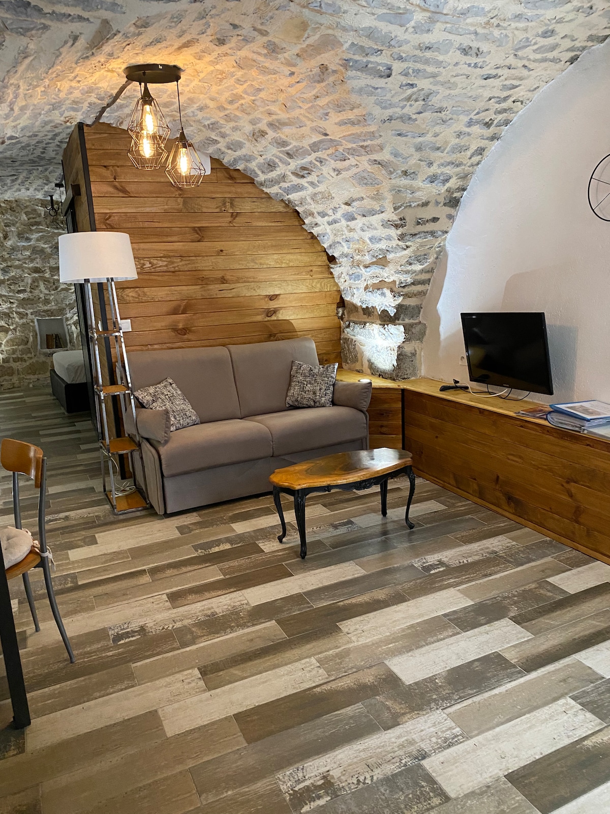 Gorgeous 40 m2 studio converted into a loft for 2 adultes and 2 kids in the heart of the medieval village of Les Matelles, located at the foot of Pic Saint Loup. Vaulted accommodation, comfort and design furnishings. Full equipment. Our charming little loft is ideally placed to enjoy the river, the scrubland, forest hikes, the city of Montpellier and the sea.
