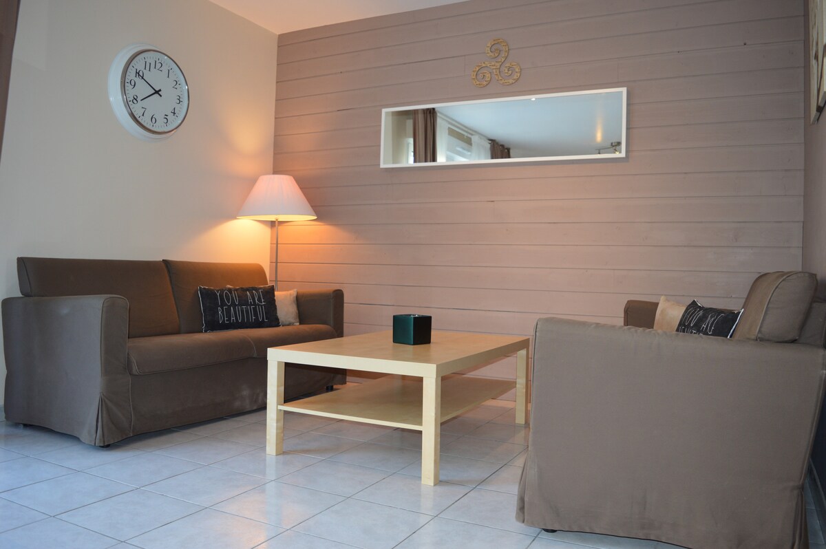 Pour le travail, pour des vacances, seul(e), en couple, ou entre ami(e)s, venez vous détendre dans ce logement élégant et tranquille. Cet appartement est entièrement rénové. Il comprend une chambre, une salle de bain avec WC, un salon équipé d'une télévision ainsi qu'une cuisine équipée. Il est idéalement situé, à deux pas de la gare et du centre ville. Wifi gratuite Arrivée en autonomie possible grâce à la boîte à clefs