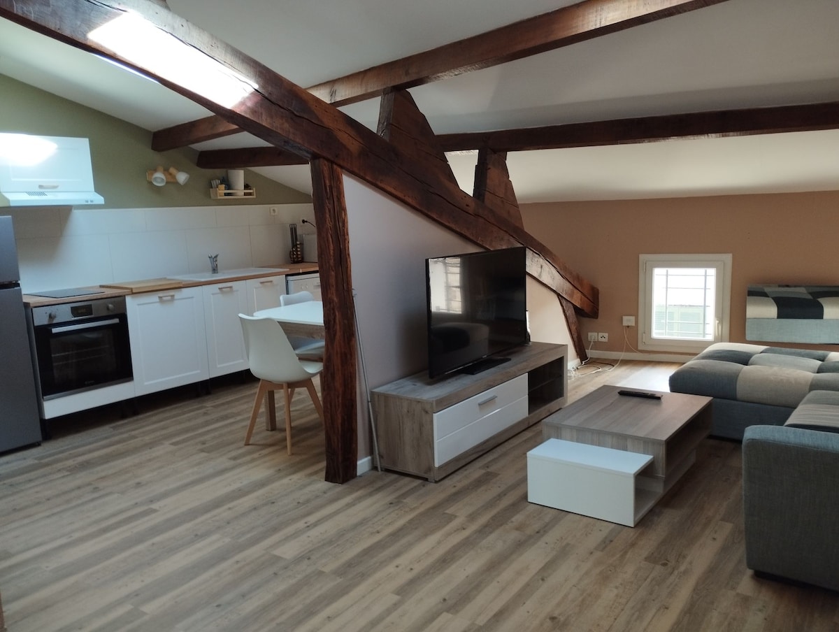 La Belle Cachette en el primer piso se encuentra en la región de Champagne, en un pueblo con tiendas y río cerca. El apartamento tiene dos dormitorios con camas de 160 cm, modernos baños con ducha. El salón, el comedor y la cocina están abiertos y son nuevos a los estándares modernos, equipado con aire acondicionado reversible, Wi-Fi, televisión grande para su comodidad. La cocina está equipada con todo lo necesario.