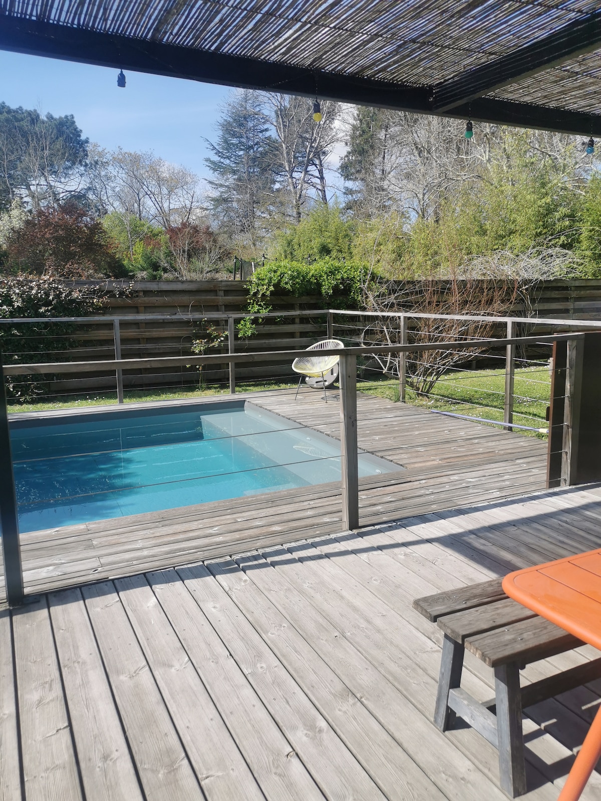 Welcome to our fully renovated house in the very center of the village of La Brède, famous for Montesquieu. We are located in the heart of the vineyard area called « graves » just next to « Pessac-Léognan ». The local shops are walking distance and offer lot of choice (3 bakeries, 2 butchers, a grocer…) so you won’t have to go far to fill the fridge ! The kitchen/living room opens onto a sunny terrace as well as a little garden, perfect for sipping wine while watching the kids play !