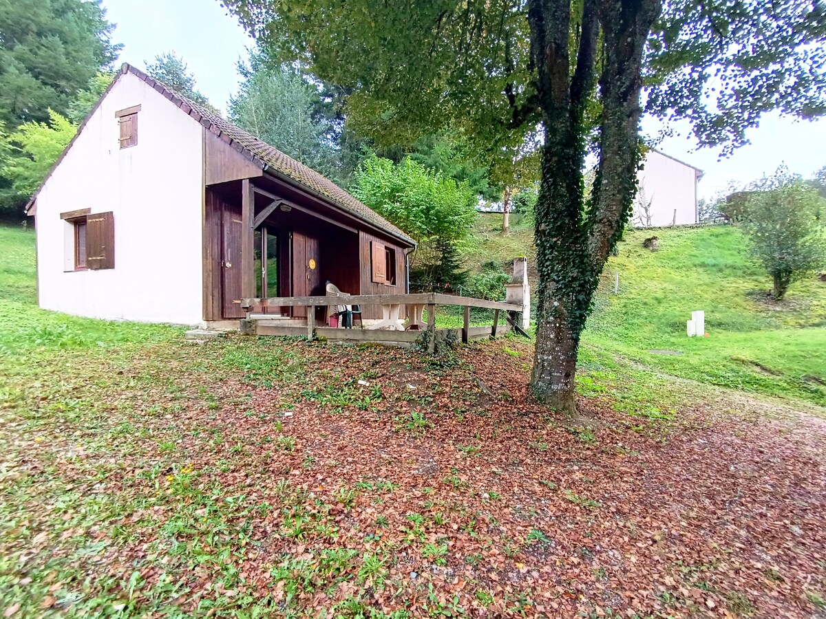 Cabaña de madera de 9 m² y terraza de 15 m² sobre pilotes, situada en medio de un pequeño bosque de 5000 m². Ideal para una etapa para ciclistas y/o excursionistas. - Inodoro seco y ducha bajo un toldo de madera - Camas nido de 2 plazas separables - Barbacoa y terraza disponibles Entorno tranquilo y sombreado. La cabaña se encuentra a 35 metros de la casa del propietario en una aldea cerca de Aurillac (10 km). Todos los comercios a 3 km y la base náutica a 7 km