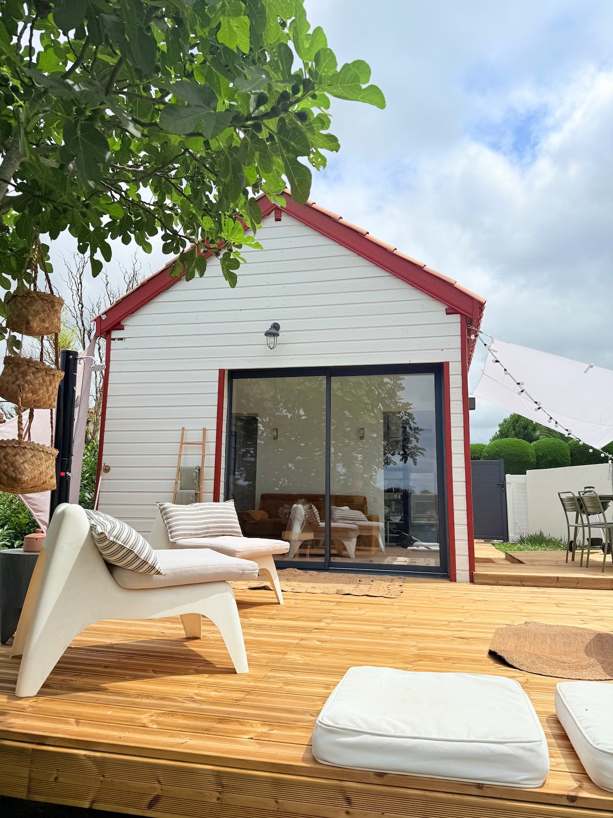 Luminosa casa adosada de arquitecto enclavada en el corazón del País Vasco. Una decoración cuidada, grandes ventanales que dan a una terraza de madera de 38 m² y una piscina climatizada privada. A las playas se puede llegar a pie en menos de 15 minutos.
