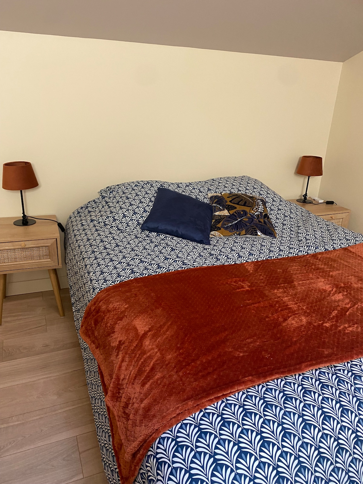 Alojamiento nuevo en un pueblo tranquilo con todos los elementos esenciales a menos de 5 minutos. Con aire acondicionado, que consta de una sala de estar abierta con sofá cama y TV, 2 dormitorios, 1 cuarto de baño con ducha a ras de suelo, 1 ase. Garaje para guardar bicicletas u otros, terraza con mesa y sillas para disfrutar de sus comidas al aire libre+2 chilenas y 2 tumbonas. Se proporcionan sábanas y toallas bajo petición , y por un cargo adicional para estancias de menos de 3 noches sábanas: 10 €/cama toalla:3€/persona
