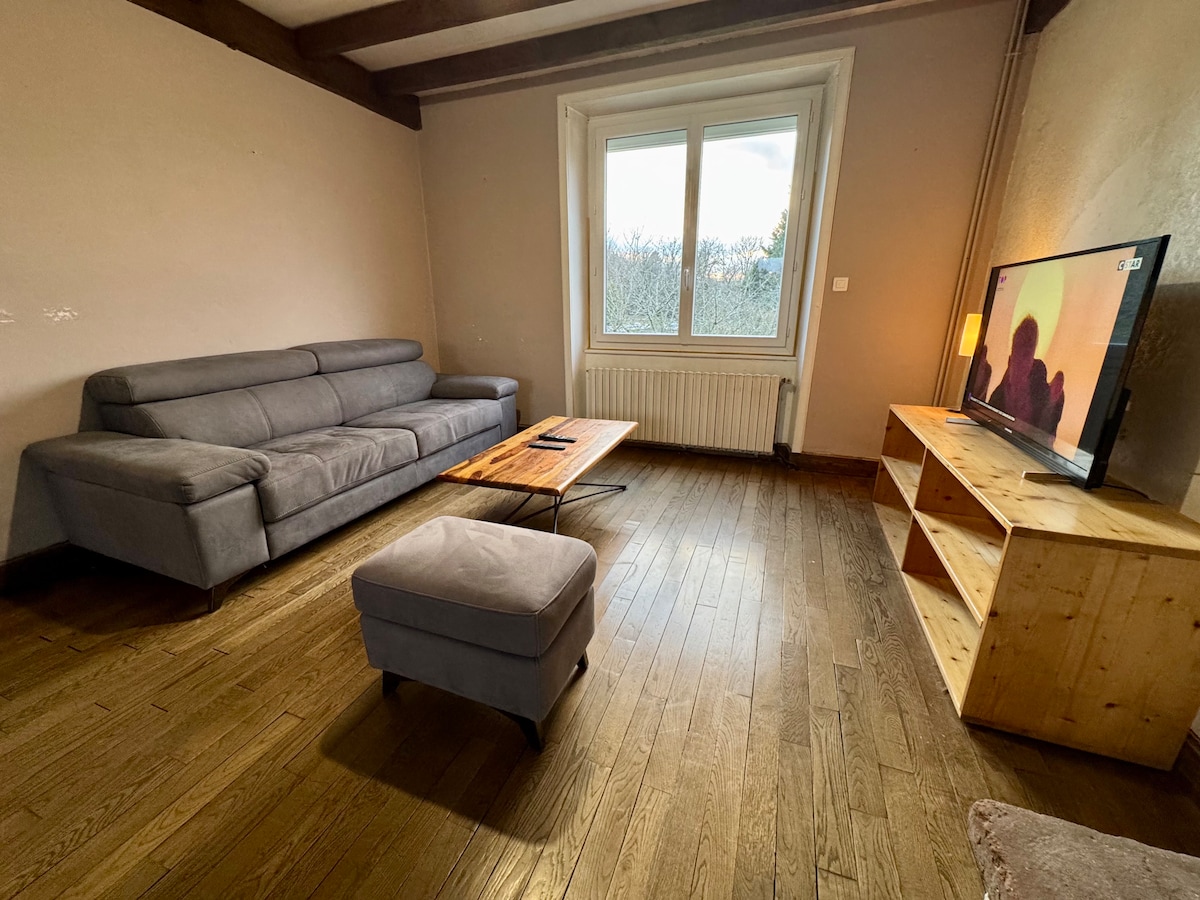 Bienvenido a nuestra casa unifamiliar situada a pocos metros del hipódromo y del castillo de Pompadour. Ideal para una estancia en pareja, en familia o con amigos. 🛏️ 2 amplias habitaciones equipadas con camas Super King Size y Queen Size 🛋️ Un sofá cama en la sala de estar para acomodar a una persona adicional. 🍽️ Una cocina nueva y bien equipada para preparar platos deliciosos. 🌿 Un entorno tranquilo y agradable, perfecto para relajarse después de un día de descubrimiento.