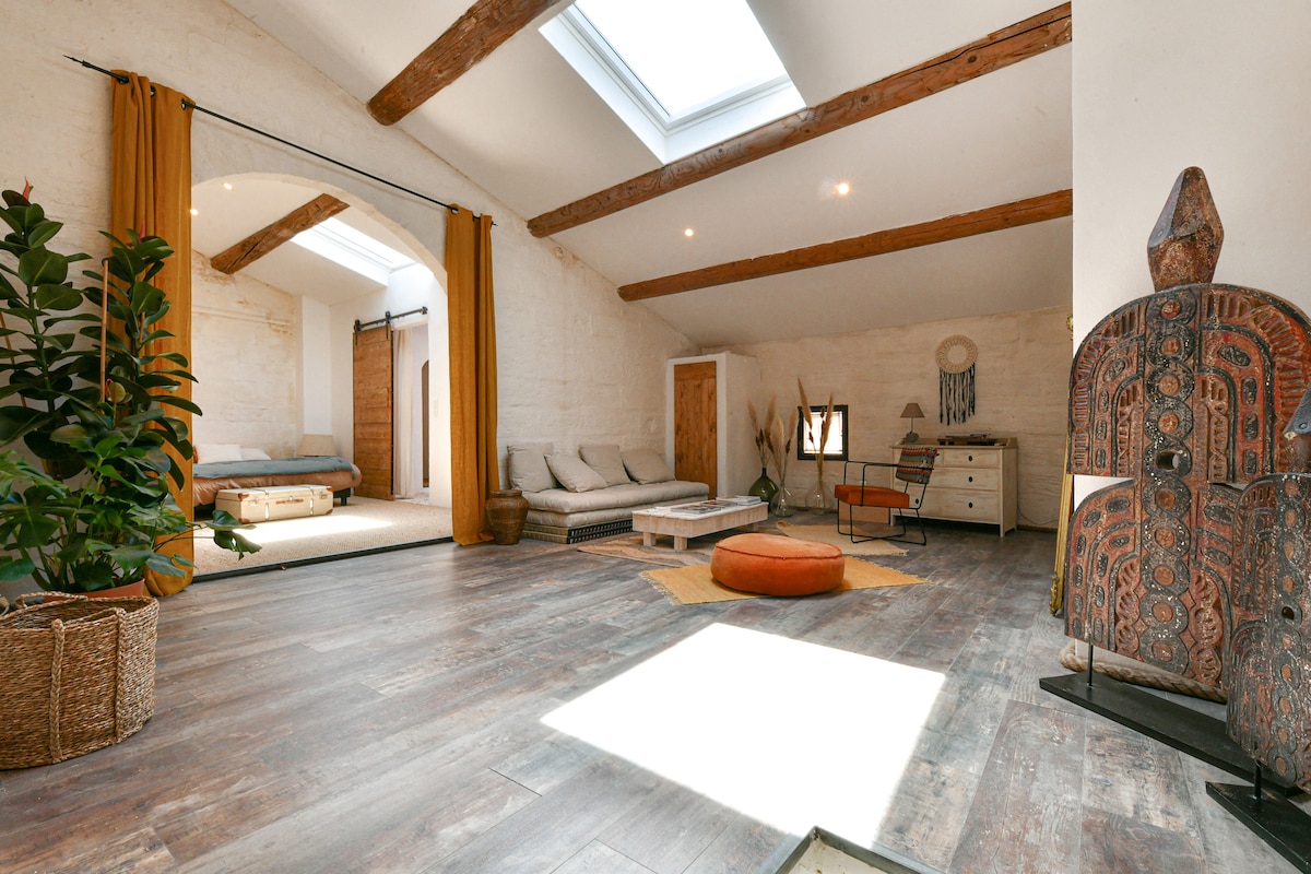 Este hermoso apartamento está idealmente situado en el centro histórico de Uzès. Fue cuidadosamente renovado en 2018 con el fin de preservar el encanto de las piedras antiguas y la chimenea. El apartamento muestra características muy originales, incluyendo un hermoso techo alto tradicional francés.