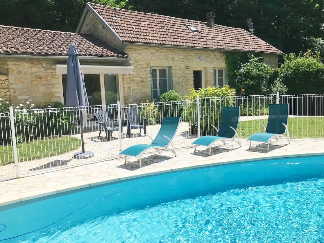 Mi alojamiento es una base perfecta en Sarlat para hacer turismo y relajarse cerca de muchos lugares interesantes como Lascaux. Está cerca de restaurantes y comedores, y se puede llegar caminando al centro histórico. Es bueno para familias (con hijos) y grupos grandes. Es elegante, con piscina de agua salada climatizada y wifi, chimenea, dos cocinas y TV del Reino Unido y Francia. Te va a encantar mi alojamiento por el ambiente, el barrio y el espacio al aire libre. Y está cerca de muchos castillos y cuevas prehistóricas. Cargador de vehículos eléctricos.