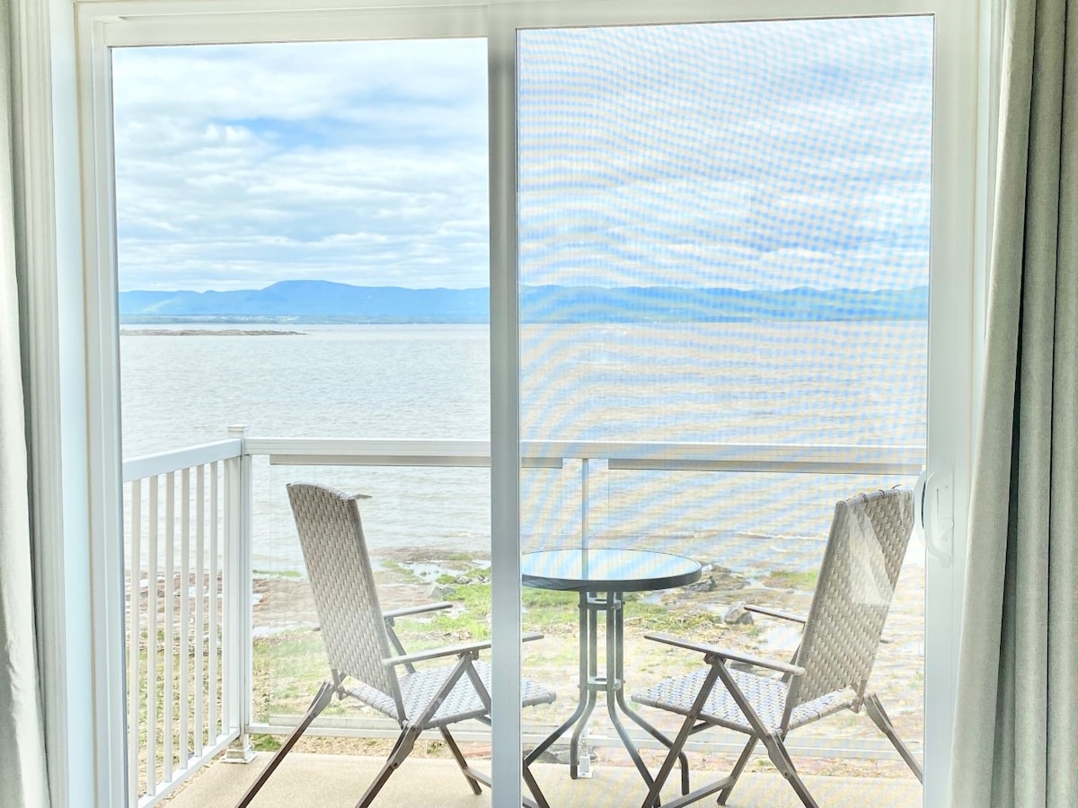Une chambre avec balcon surplombant le fleuve! La Plage Motel est un concept unique d'hébergement au bord du St-Laurent. En ouvrant la porte, vous serez émerveillé par la vue sur les îles, la baie et le Mont-Ste-Anne. Un spectacle qui se renouvelle à chaque heure au gré des vents et des marées. Venez faire le plein d’énergie sur ce site exceptionnel où vous pourrez savourer les plus beaux couchers de soleil. CITQ # 004410