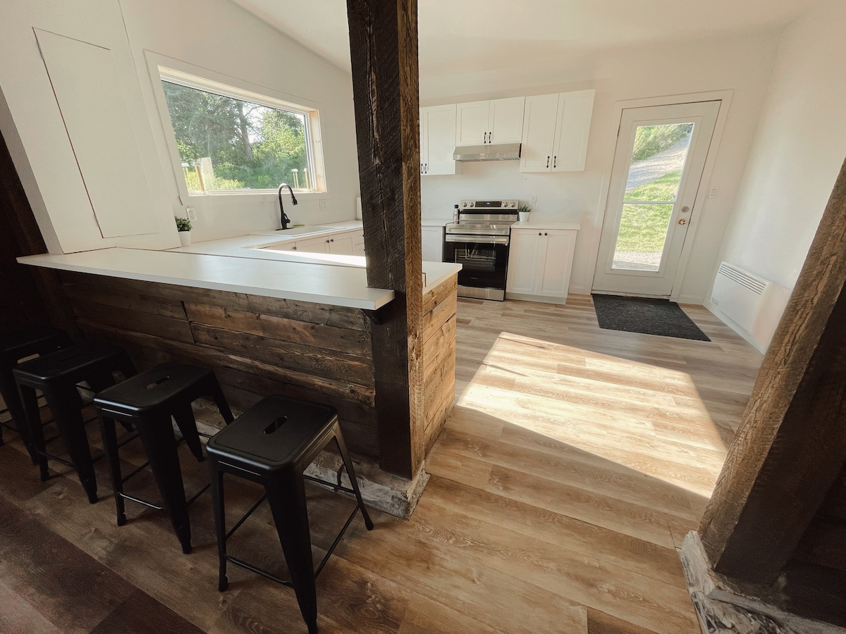 Ce logement fraîchement rénové propose un lit queen et un divan lit. Une salle de bain privée et un coin dinette complètent le logement. Il est parfait pour 3 adultes ou 2 adultes et 2 enfants. Ce petit studio vous donne accès à de chaleureux espaces communs tels que la table de billard, la piscine chauffée, le magnifique bord de fleuve et les bucoliques sentiers pédestres. Venez vous ressourcer sur notre île qui sera vous accueillir en plein cœur du majestueux fleuve Saint-Laurent.