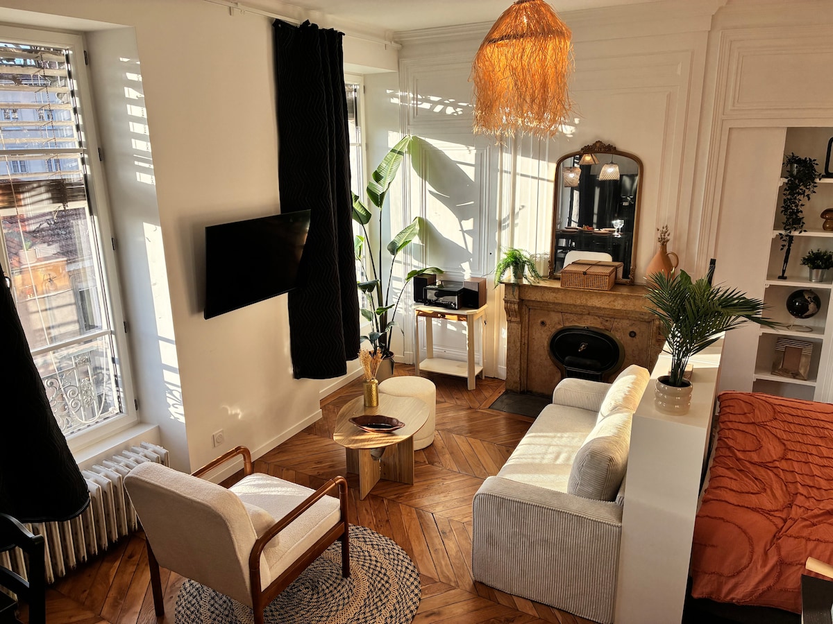 🌟 Charmant studio idéal pour une escapade. Posez vos valises dans ce studio lumineux, entièrement rénové, situé au 3ᵉ étage d’un immeuble ancien sécurisé (sans ascenseur). Accessible par un sas commun, le logement se trouve à deux pas de la gare de Perrache, avec tramway au pied de l’immeuble, vous serez idéalement situé pour découvrir les trésors de la ville : musées, balades, gastronomie. Un petit cocon calme et confortable, parfait pour profiter pleinement de votre séjour lyonnais.