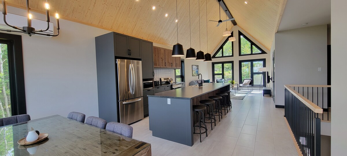 Un refugio sereno con vistas impresionantes al río St. Laurent. Entra en esta elegante casa de campo donde la comodidad se encuentra con la naturaleza. Bañado con luz natural y cuidadosamente equipado con todas las comodidades modernas, es el lugar perfecto para desconectar y recargar energías. Saborea tu café matutino mientras el sol sale sobre el agua, relájate con vistas panorámicas al río y deja que la belleza del paisaje te deje sin aliento.