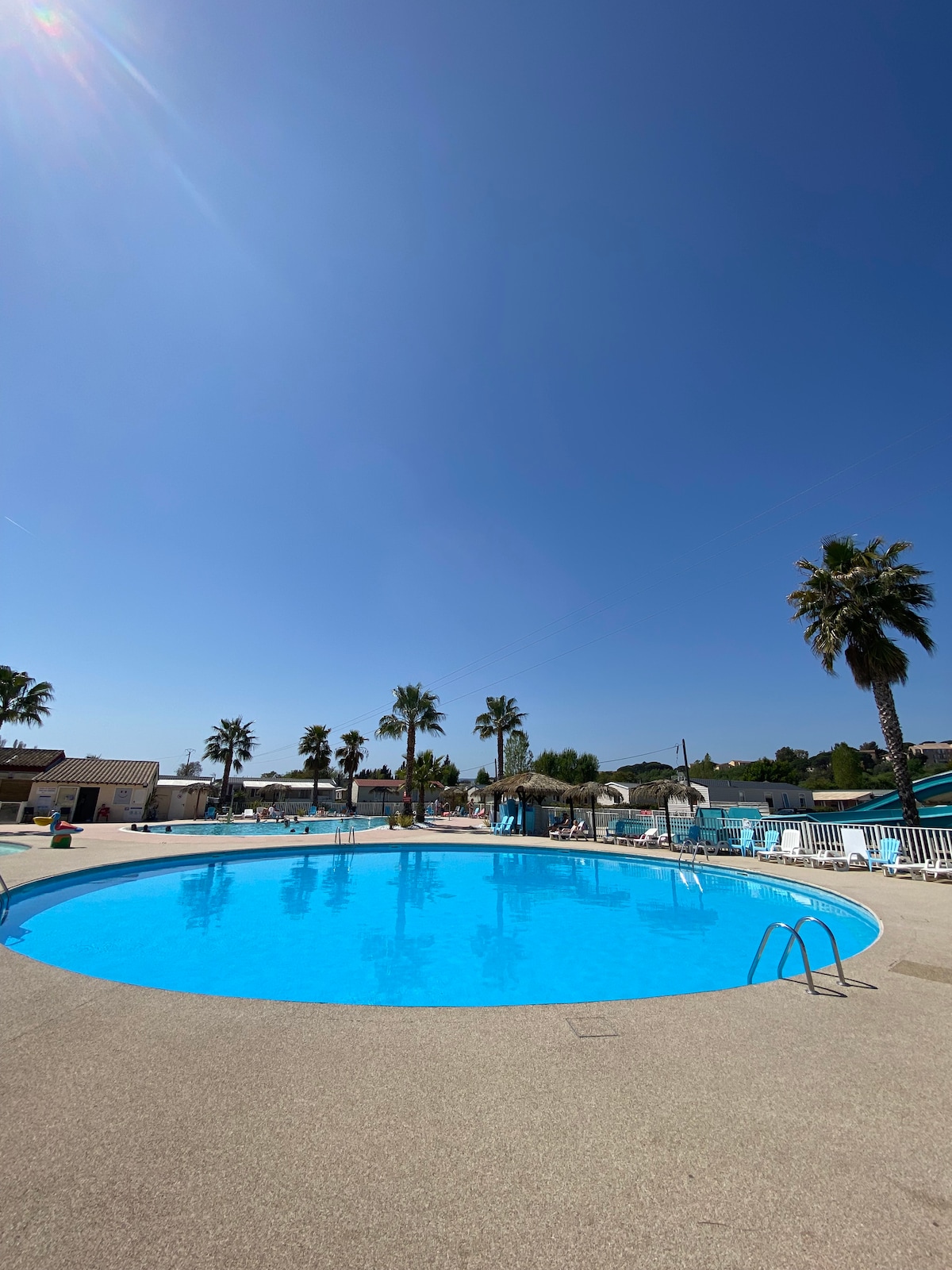 ¡Escápate al camping de lujo Parc Montana! Relájese bajo el sol mediterráneo y disfrute de las 3 piscinas, 1 de ellas climatizada. Toboganes acuáticos, Jacuzzi, parque polideportivo y animaciones familiares . Cerca de las playas y sitios imprescindibles, Todo incluido: ¡Limpieza, WiFi, películas VOD Clim bicicletas! Gran terraza que se cierra muy conveniente para su perro o niños. ¡Estadía inolvidable garantizada! Alquiler / sábanas toallas gestionadas por la recepción del camping