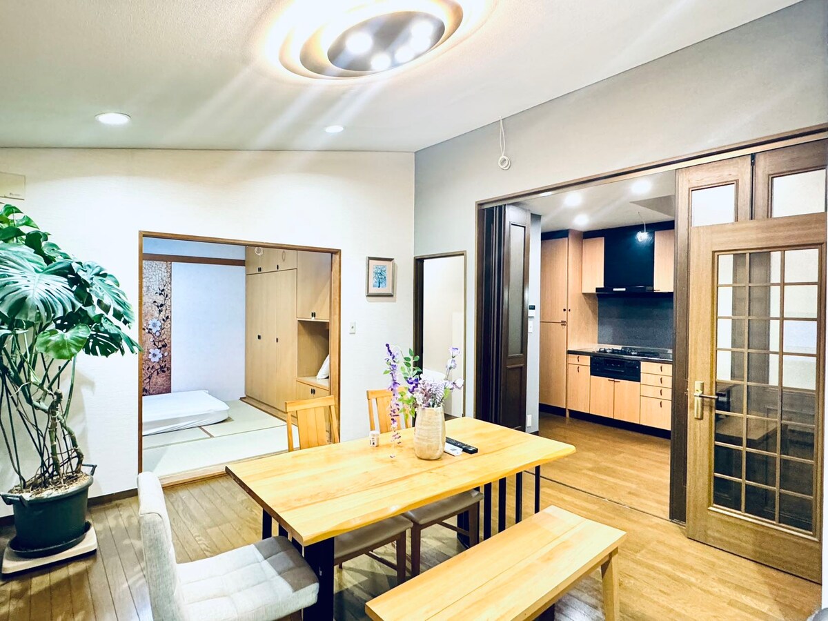 A solo 2 minutos a pie de la estación, Palette House es un refugio acogedor y elegante perfecto para explorar Tokio. La cocina de estilo industrial incluye una barra de isla, utensilios de cocina completos, copas de vino y un dispensador de agua, ideal para cocinar y tomar bebidas por la noche. La sala de estar cuenta con una decoración de madera flotante natural y un cómodo sofá, mientras que el dormitorio moderno japonés ofrece un espacio refinado y relajante. Con comodidades bien pensadas y un diseño cálido, es una base perfecta para parejas y familias.