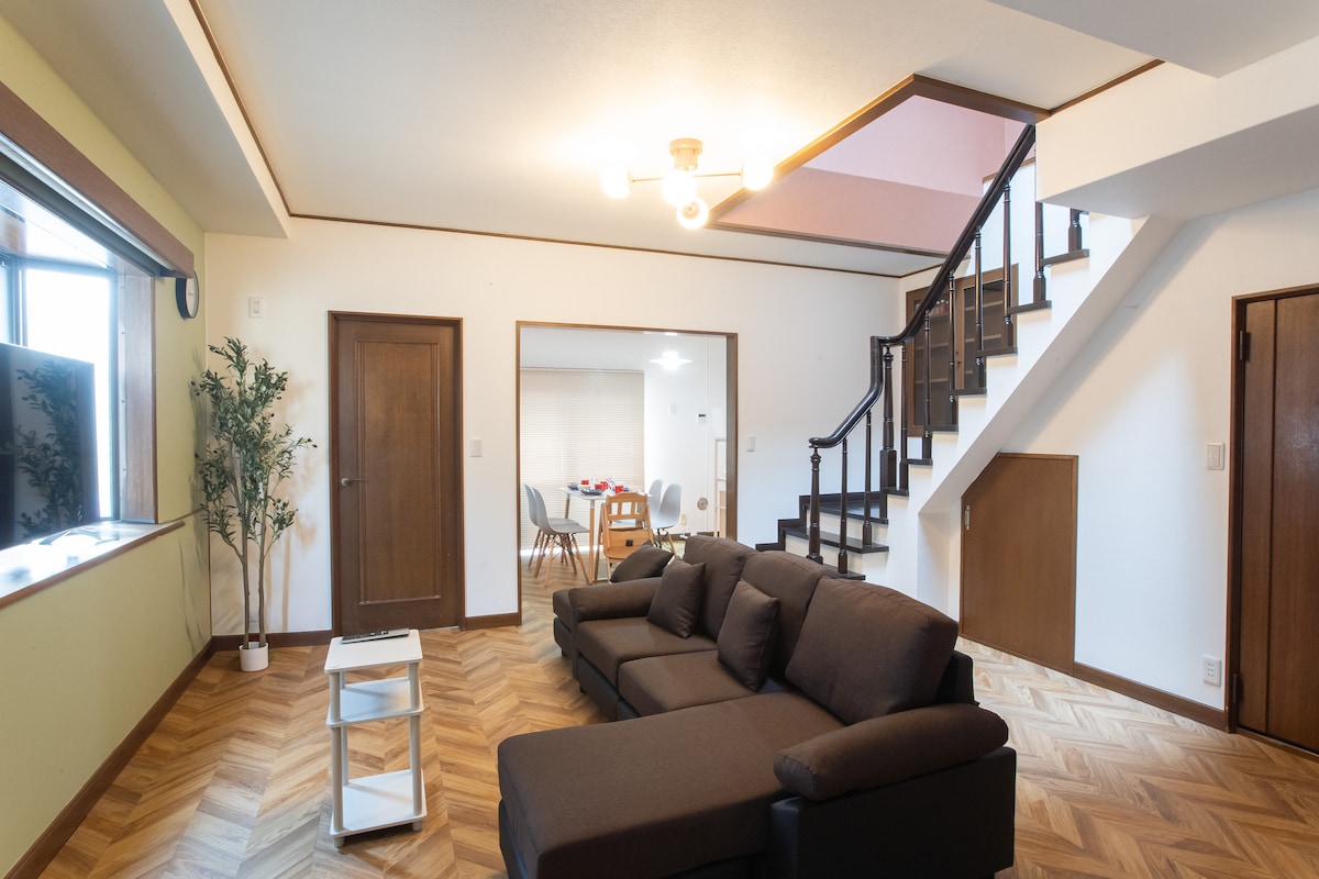 Casa limpia renovada, bañera nueva, cocina nueva, tostadora,microondas, lavadora y secadora,,,todo nuevo. Cada habitación tiene una llave y un bonito sol que brilla. Esperamos que todos los huéspedes que hayan reservado disfruten de una estancia cómoda.No dudes en ponerte en contacto con nosotros si tienes alguna duda. Esta casa solo está disponible para la cantidad de personas que reservaron Toda la casa es de 5 DK (una habitación no se puede utilizar) con un jardín y dos estacionamientos.Disponemos de tamaño de grupo grande. Es una hermosa casa que acaba de ser renovada.La cocina, el baño y el inodoro son nuevos. Lavadora y secadora automáticas que se pueden secar hasta que estén completamente secas. El lavabo es un espejo de tres lados, ducha y un gran lavabo. Si puede traer un DVD/BD en vivo, etc., puede experimentar el estado de ánimo de la arena en la pantalla grande. (También puedes ver You Tube en alta definición en la pantalla grande) Soleado o bueno.Proporcionamos dos bicicletas
