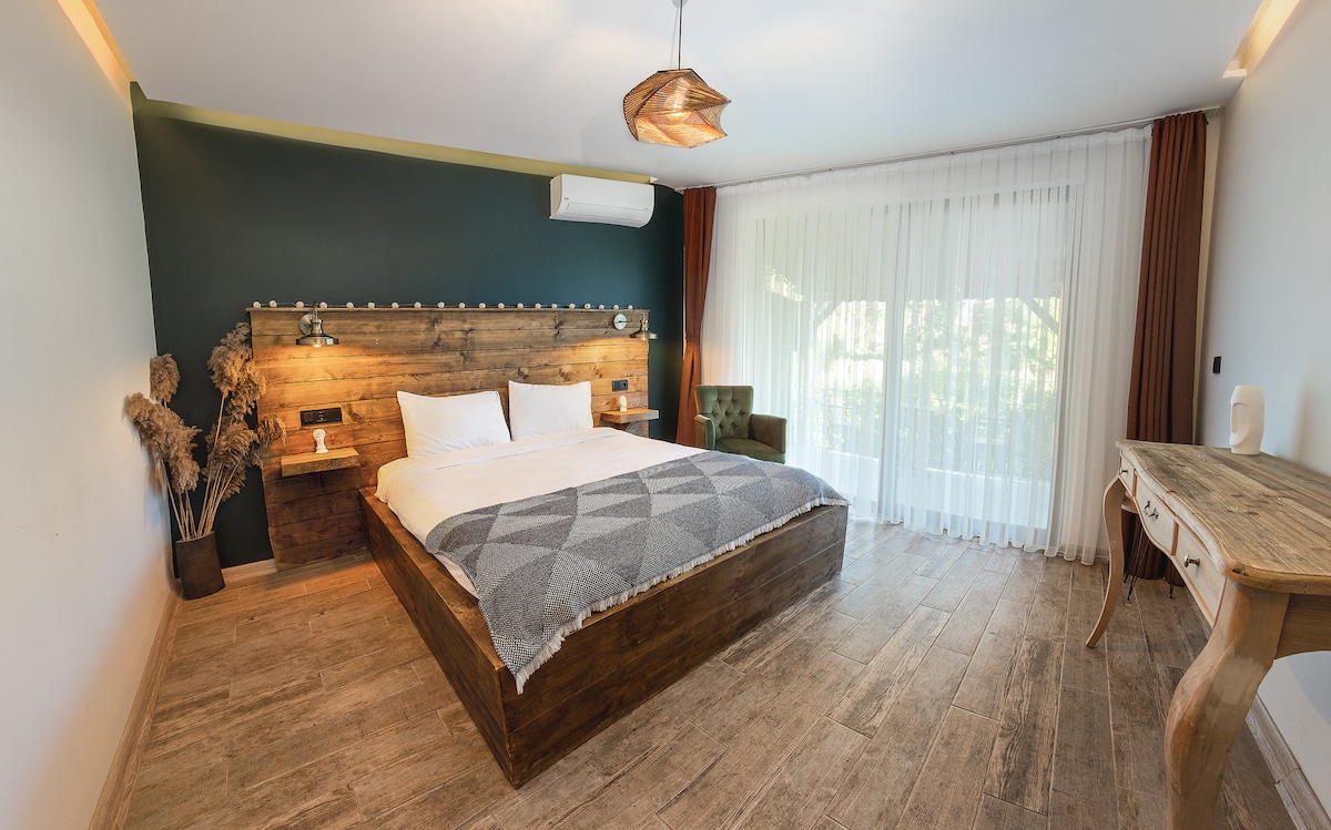 Tüm detaylarıyla düşünüp tasarladığımız bu odada çok rahat bir konaklama deneyimi yaşayacaksınız.