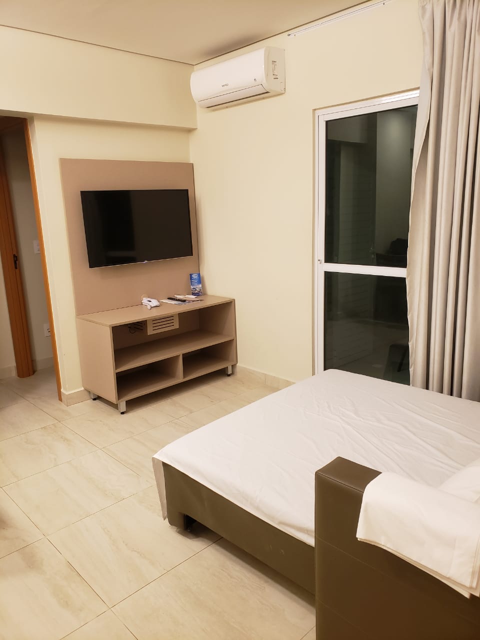 Apartamento de 30m². A sala integrada conta com sofá-cama, Smart TV 40” e ar-condicionado. A área de apoio dispõe de balcão com banquetas, micro-ondas, frigobar e utensílios básicos. O quarto oferece cama de casal, Smart TV 40”, ar-condicionado e varanda. O apartamento possui banheiro, amenities e enxoval completo, além de Wi-Fi no interior e nas áreas sociais. Acomodação com cama de casal e sofá-cama, sem cama extra. Por regra do resort, pode haver troca de apartamento durante a estadia.