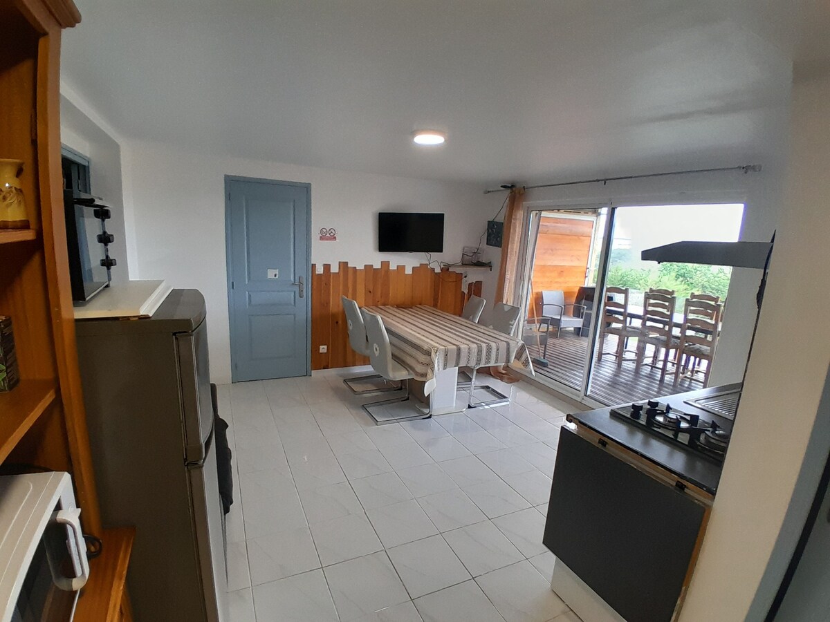 ¡Alojamiento tranquilo situado en la planta baja de nuestra villa con entrada independiente, sin vecinos con vistas al lago de la Ganguise, la cadena de los Pirineos Y las ovejas de los propietarios! Posibilidad de acceder al lago a pie o en bicicleta en 5 minutos. Base náutica del lago acceso en automóvil 10 minutos. Clasificado 4* casa de campo de Francia con aire acondicionado y sala de estar, una habitación con cama doble y pequeño escritorio, un cuarto de baño con inodoro separado (bañera de hidromasaje y ducha italiana) Terraza semicubierta con vistas al lago