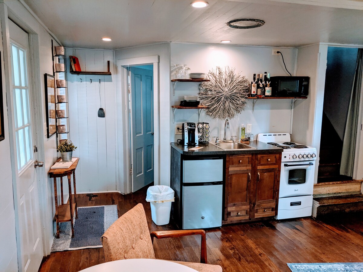 Experimenta el entorno tranquilo de esta pequeña casa de campo única en un granero restaurado que una vez albergó vacas y caballos. Contempla las estrellas desde tu patio privado. Ven y compra todos tus alimentos en la tienda de la granja. Prueba la leche recién embotellada, deliciosa y cremosa que se produjo a 50 pies de distancia. Compra quesos, huevos, carnes y mucho más. ¿Fuera del horario de la tienda? Haz tu pedido en línea en borntragerdairymarket.com. Te enviaremos el pedido a la nevera de la cabaña. Nota: No se permiten fiestas con alcohol.