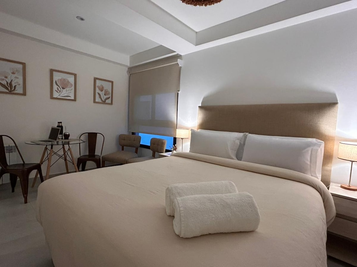 Relajate en este alojamiento único y tranquilo; Luxury Cozy Loft ofrece una experiencia única de confort y modernidad. Cada detalle está pensado para que disfrutes tu estadía como en casa, con la calidez de la mejor blanquería y la practicidad de un espacio totalmente equipado. Ubicado en un complejo exclusivo con amenities de primer nivel, en una de las zonas más seguras y tranquilas de la ciudad, combina elegancia, comodidad y cercanía a todo lo que necesitas.